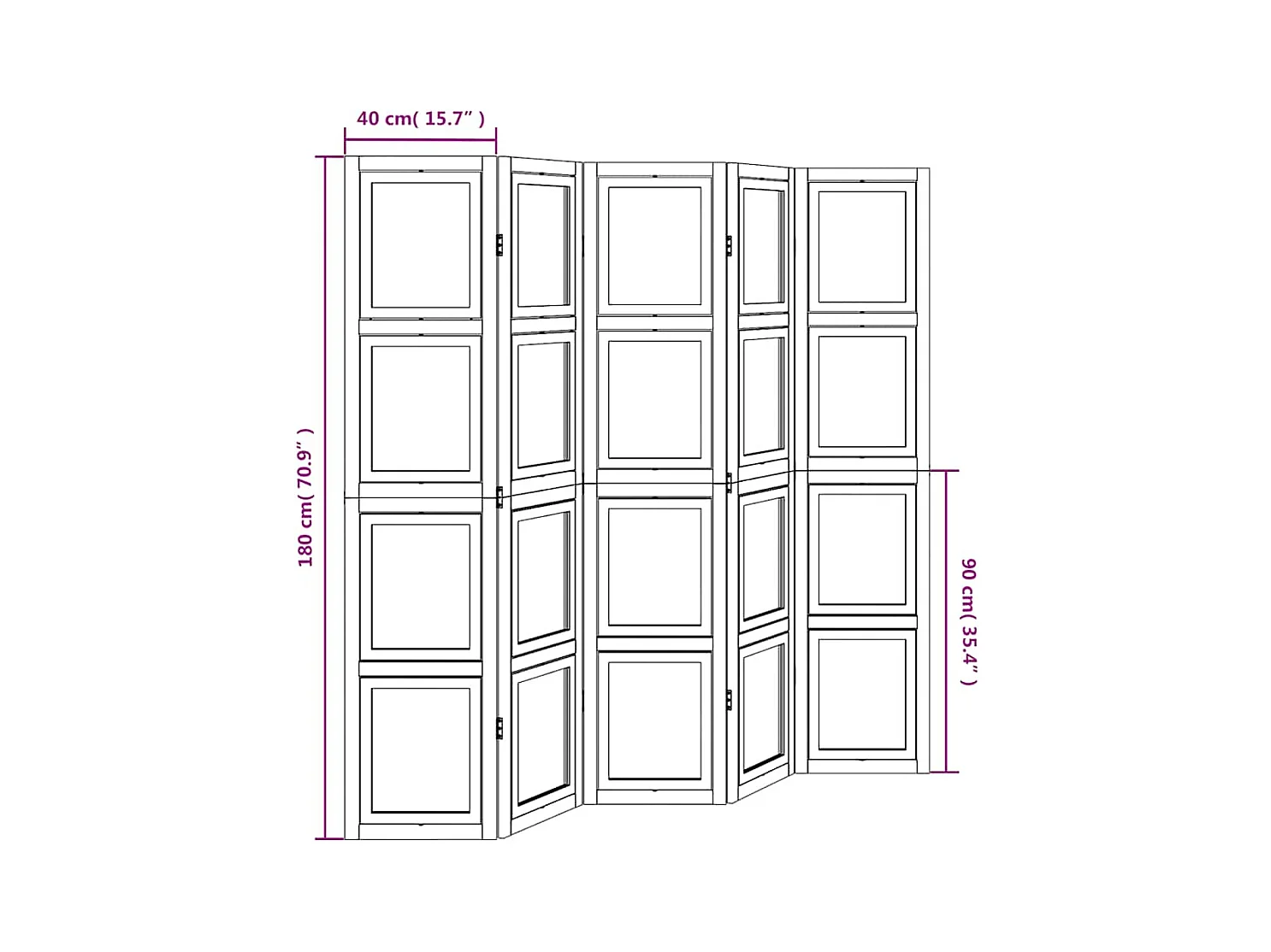 5-delige scheidingswand in wit, massief paulowniahout