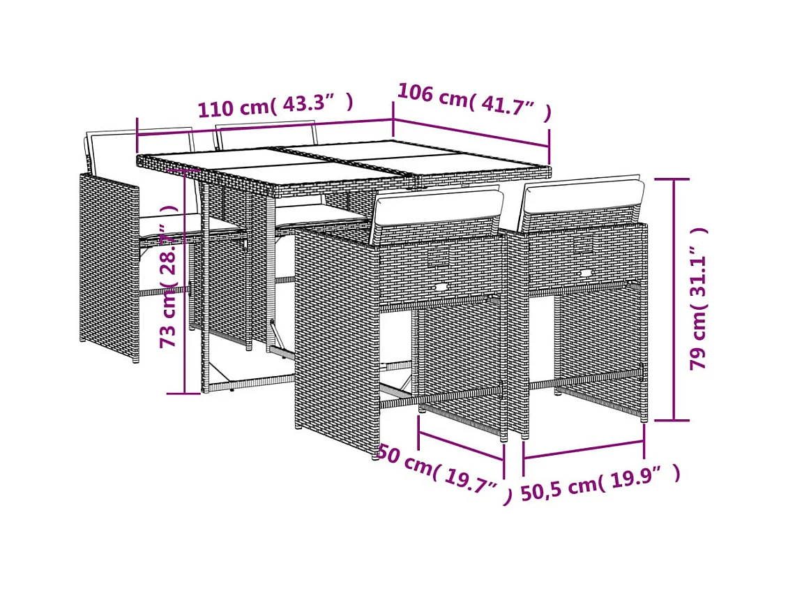 5-delige Tuinset met kussens poly rattan lichtgrijs