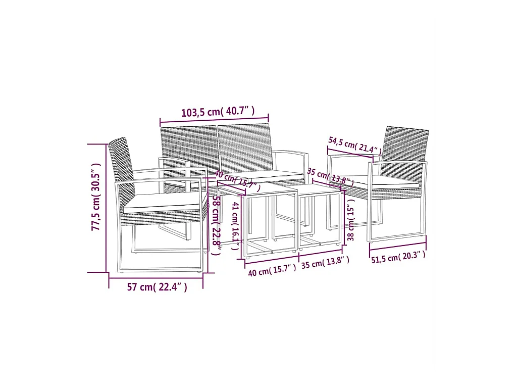 5-delige Tuinset met kussens polypropeen rattan bruin