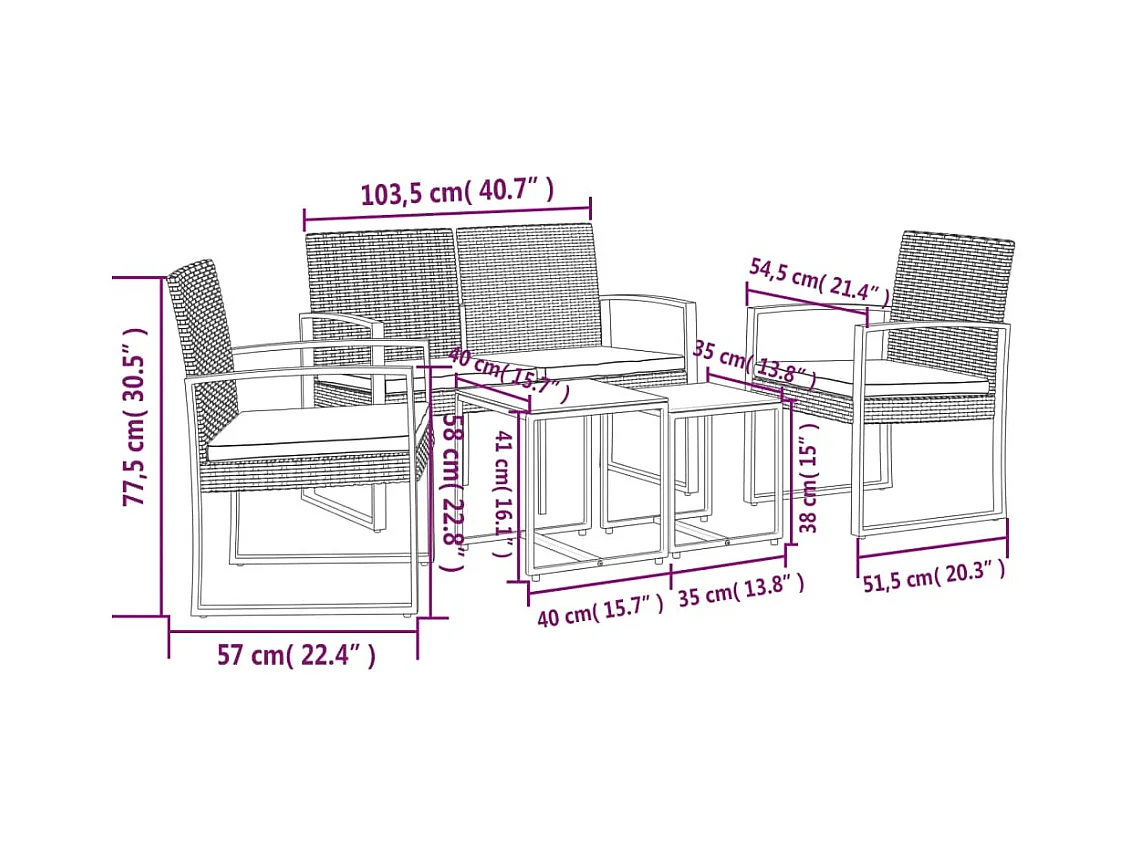5-delige Tuinset met kussens polypropeen rattan donkergrijs