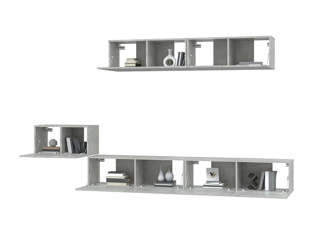 8-delige tv-meubelset in betongrijs, vervaardigd uit bewerkt hout