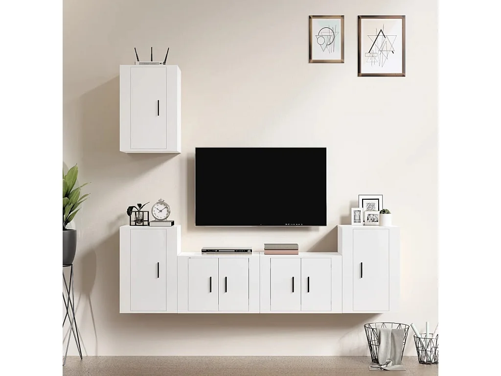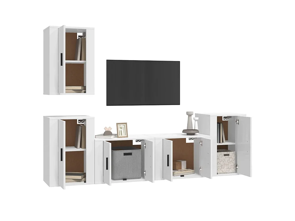 5-delige Tv-meubelset bewerkt hout hoogglans wit NL186027