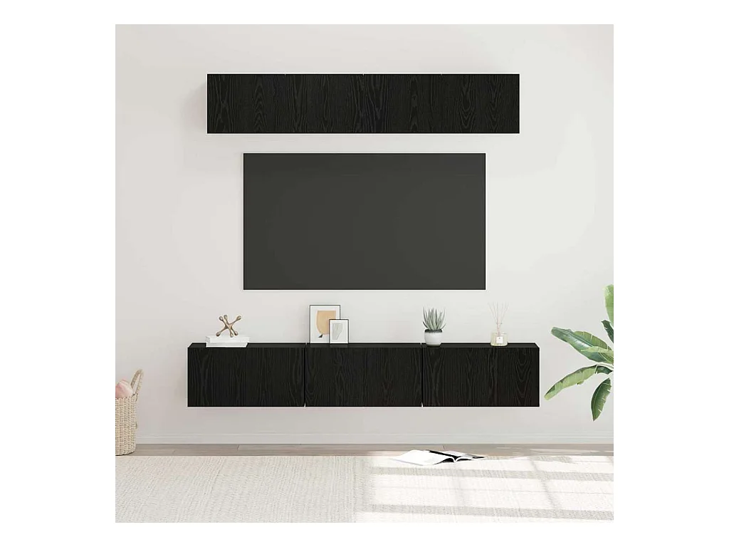 4-delige wand-tv-kast Zwarte eik Technisch hout