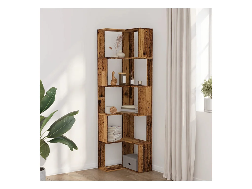 5-laags hoekboekenkast, gerecycled hout, bewerkt hout