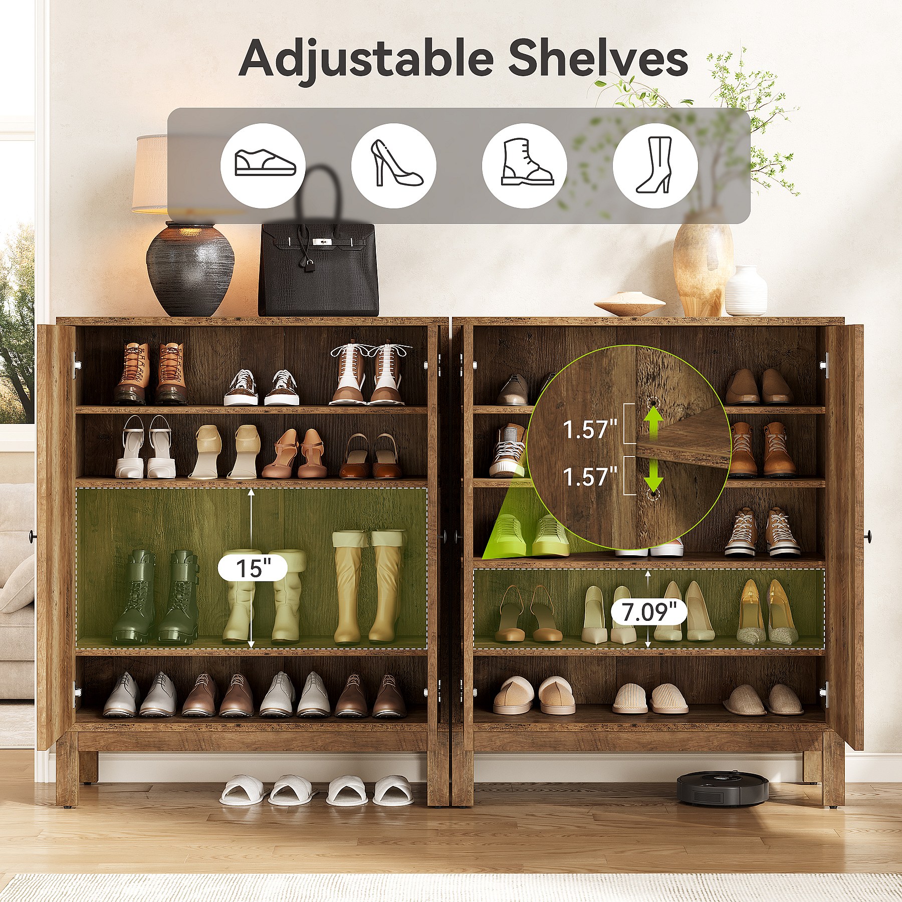 Schoenenkast met 2 deuren, 6-laags schoenenkast, verstelbare verdelers, voor hal, woonkamer, bruin