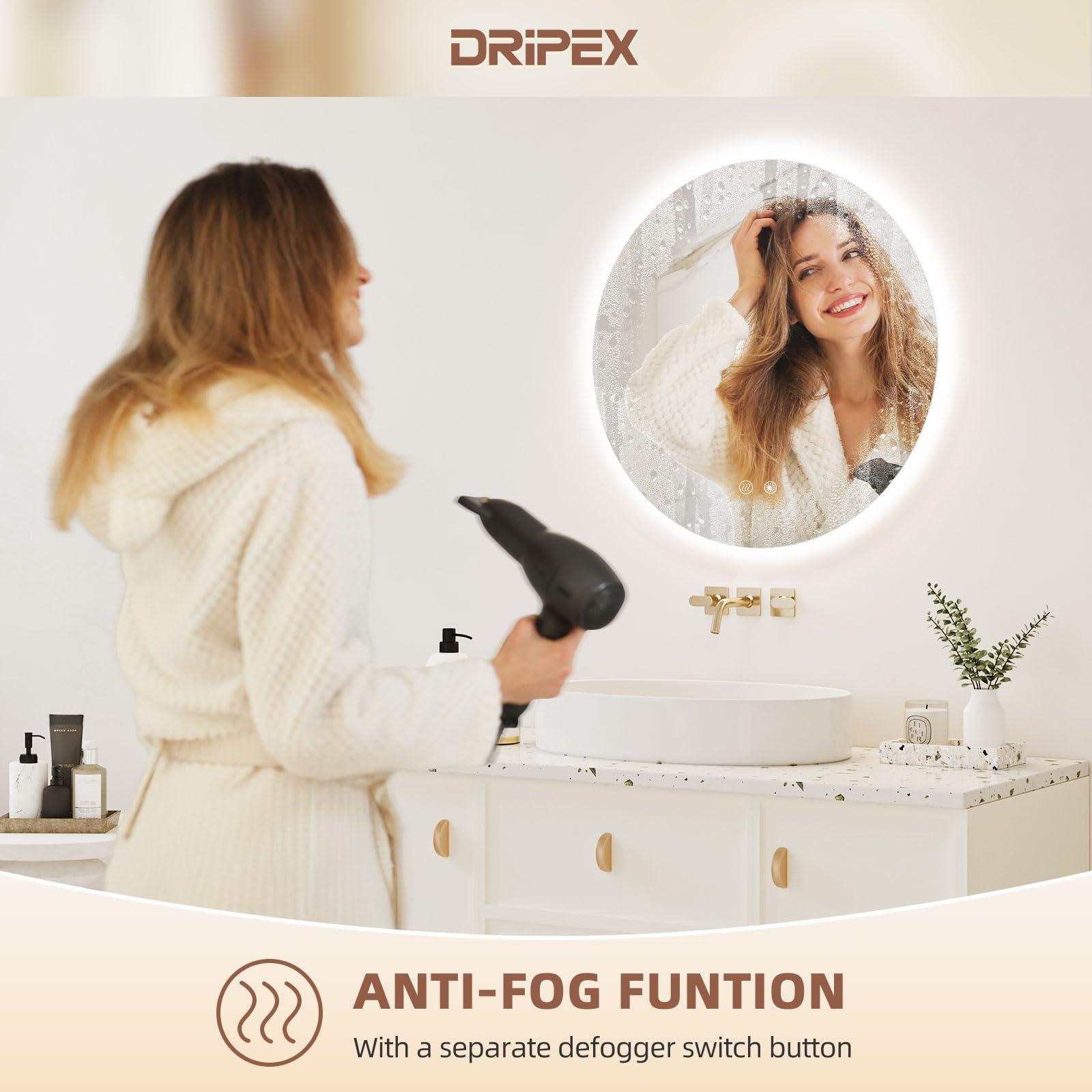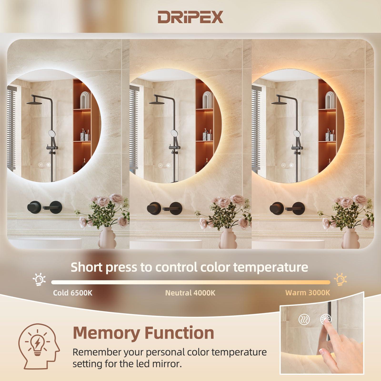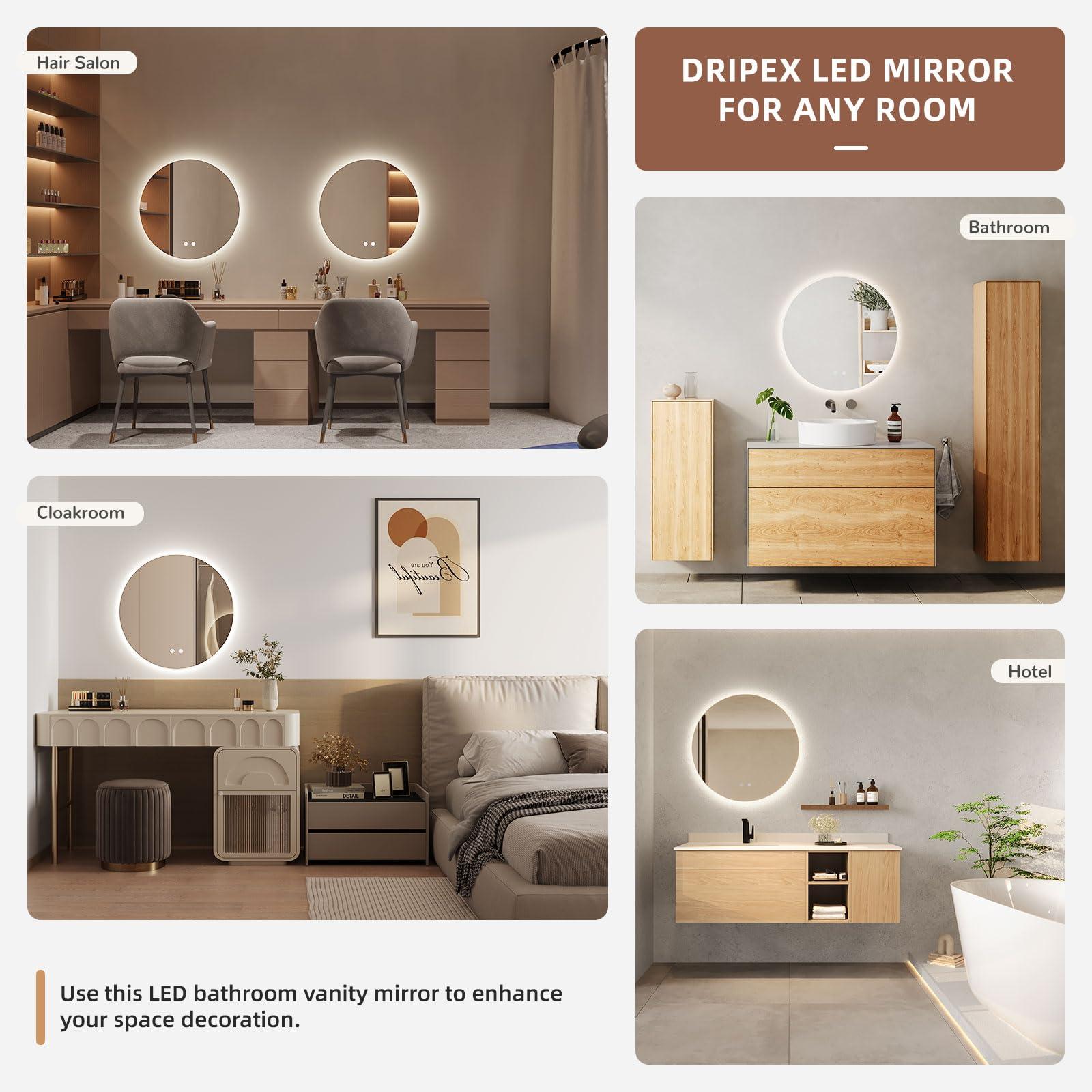 60cm ronde LED spiegel met verlichting, anti-condens, 3 kleuren, dimbaar, geheugen, HD gehard glas, aanraakschakelaar, IP44 waterdicht