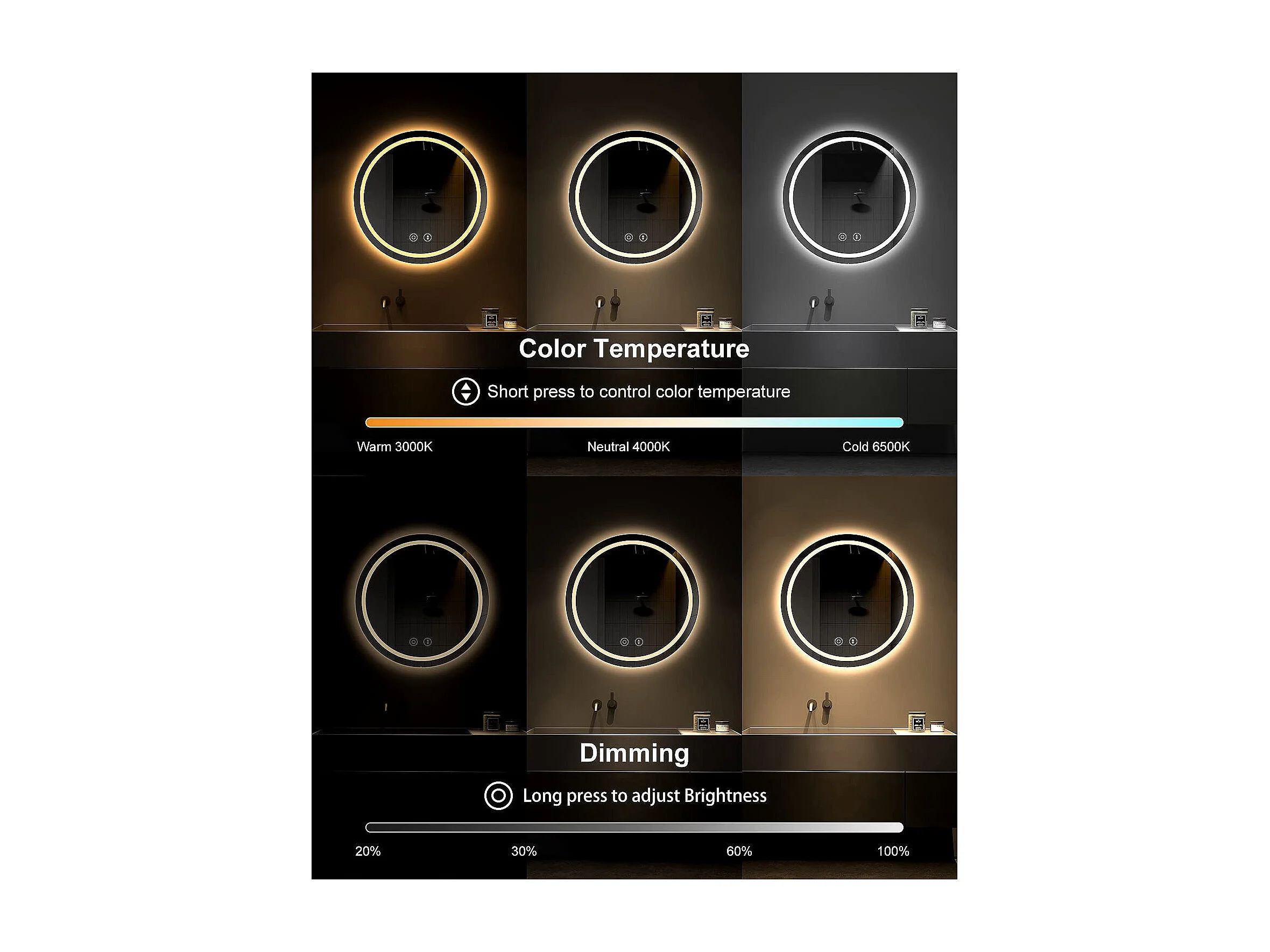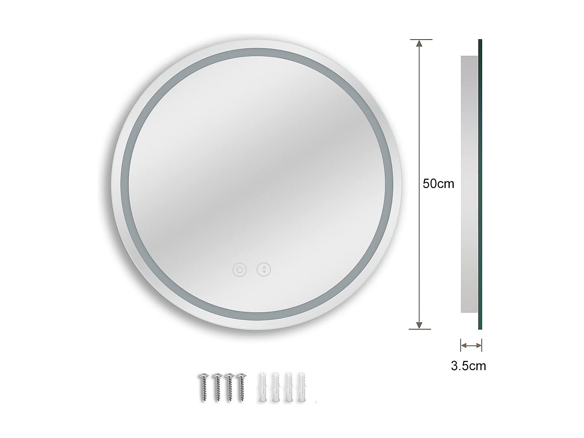 50cm ronde LED spiegel met verlichting, anti-condens, 3 kleuren, dimbaar, geheugen, HD gehard glas, aanraaksensor, IP44 waterdicht