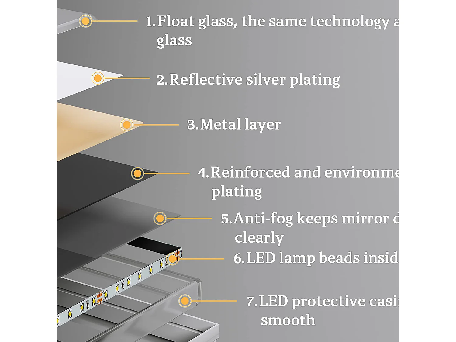 50x70cm LED badkamerspiegel, 30W, anticondens, dimbaar, 3 kleuren, aanraakschakelaar, explosieveilig, verticale of horizontale installatie