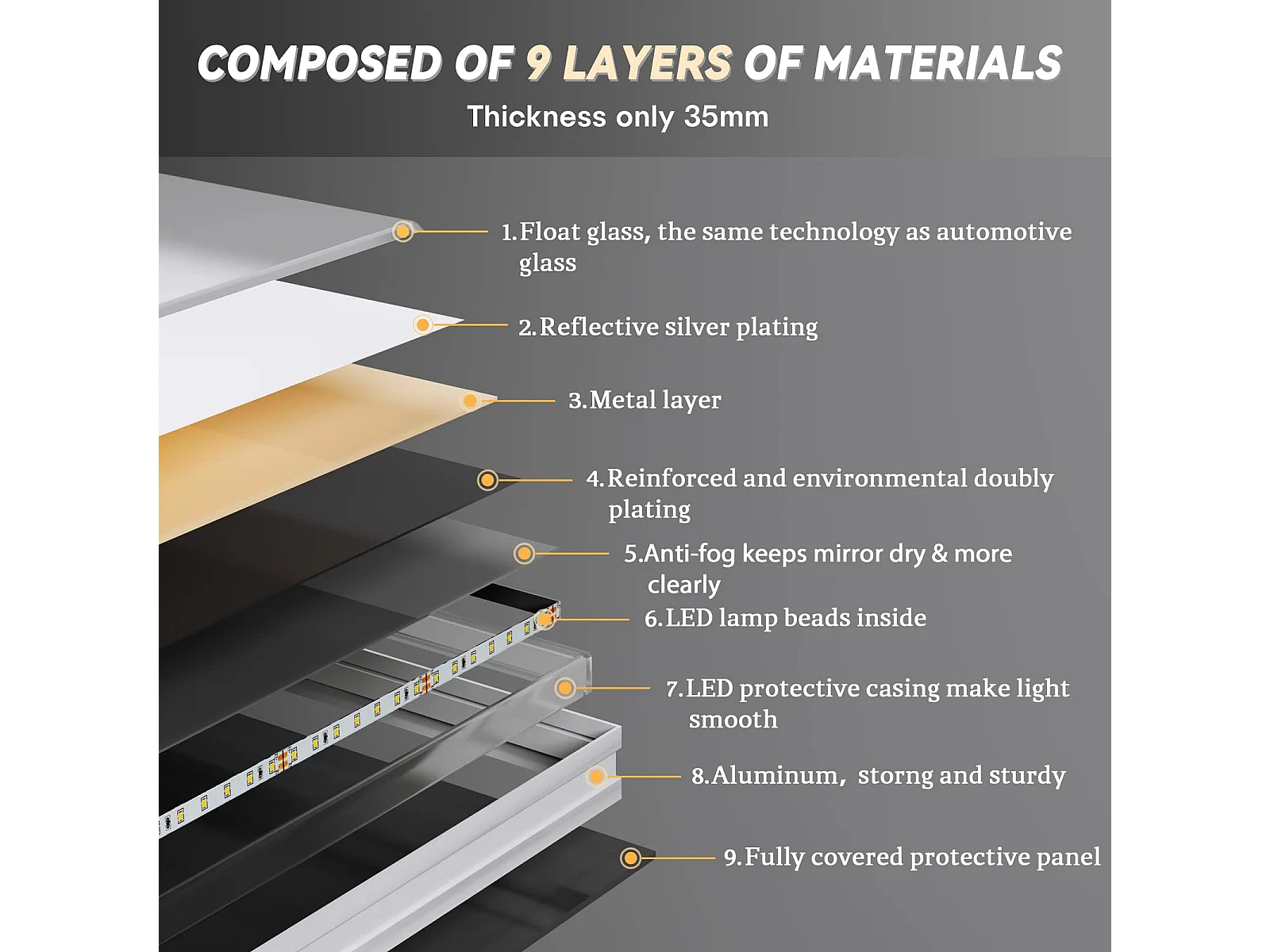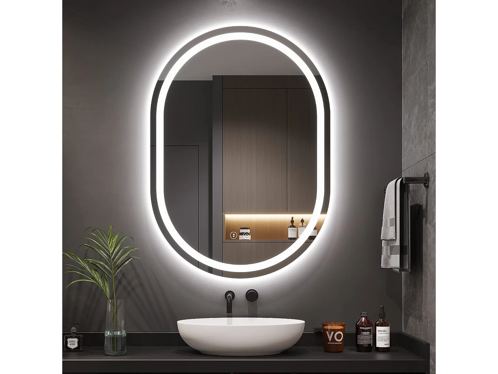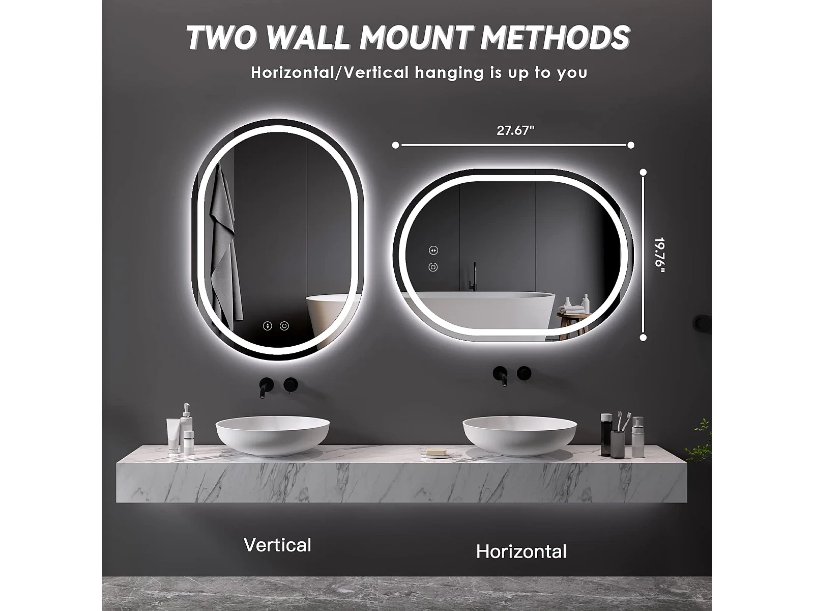 50x70cm ovale LED spiegel met verlichting, anti-condens, dimbaar 3 kleuren, verstelbare make-upspiegel met aanraakschakelaar
