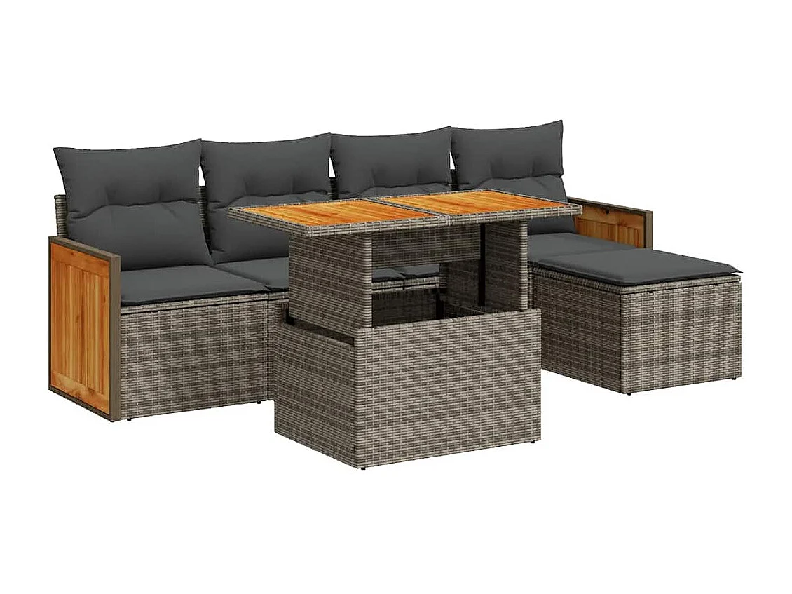 6-delige Loungeset met kussens poly rattan acacia grijs