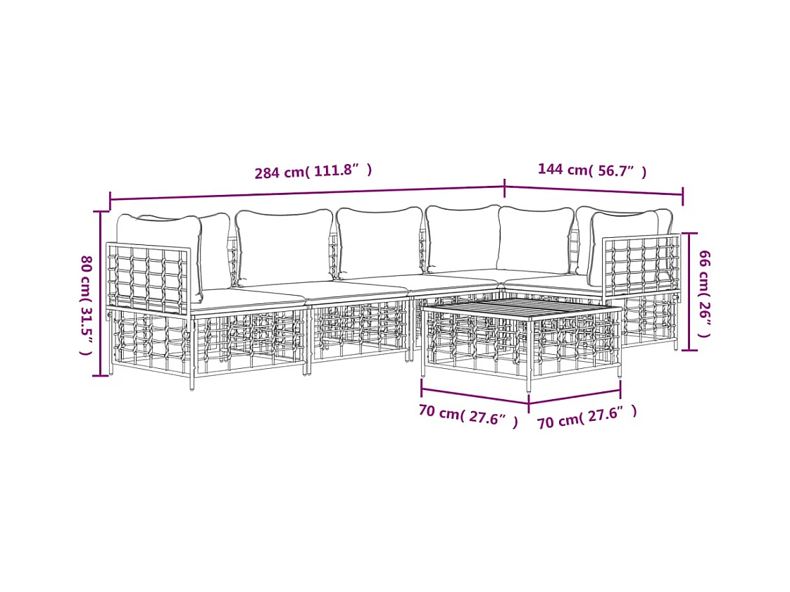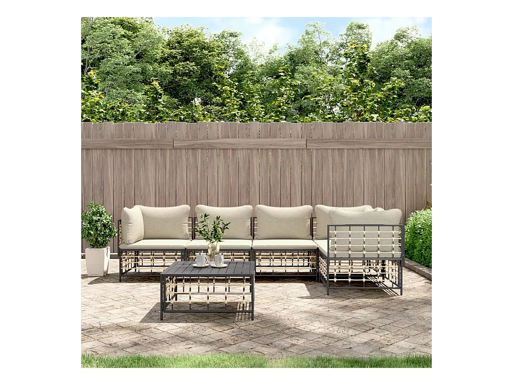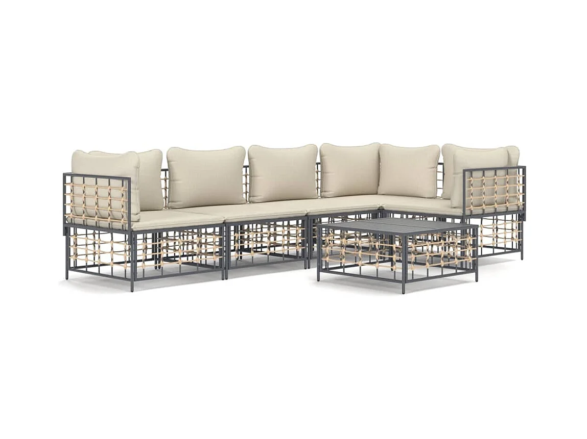6-delige Loungeset met kussens poly rattan antracietkleurig