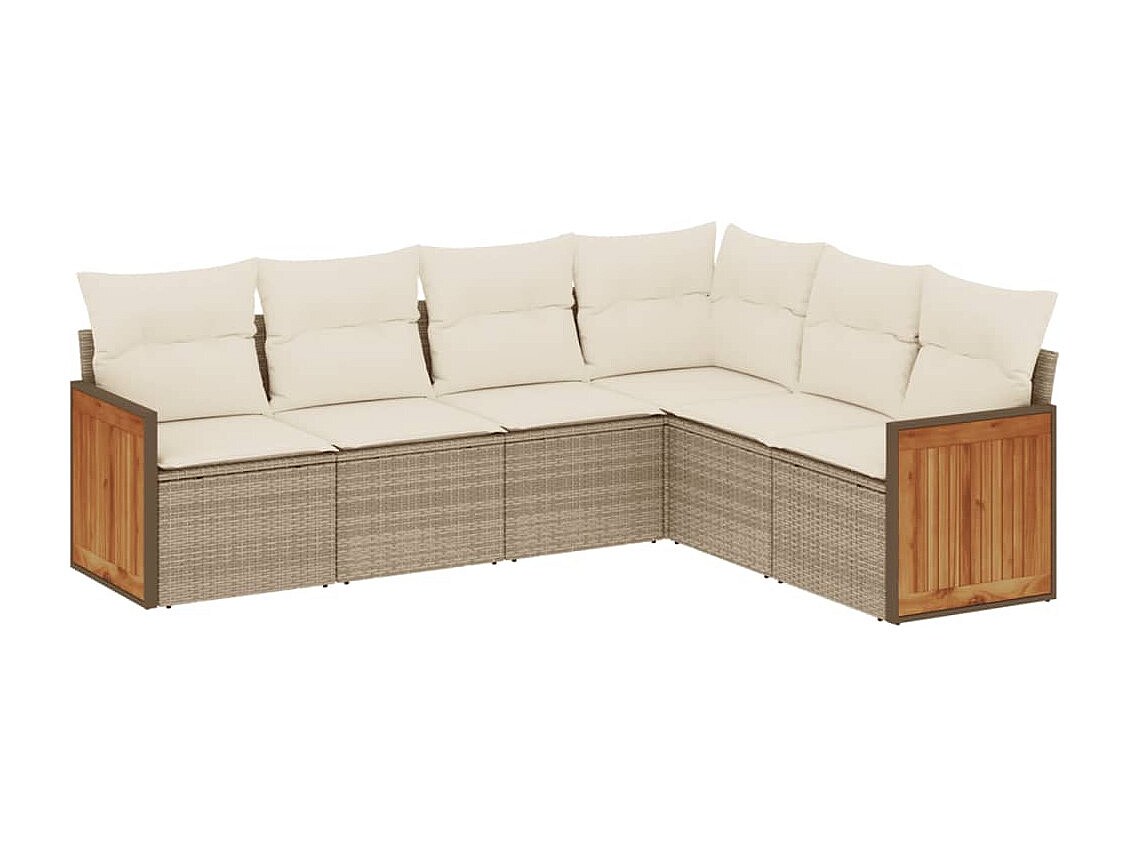 7-delige Loungeset met kussens poly rattan gemengd beige