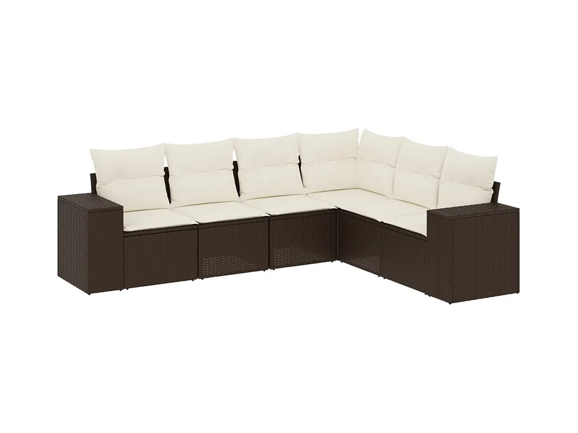 6-delige Loungeset met kussens poly rattan bruin