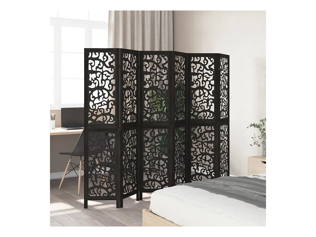 3-delige scheidingswand Dennenhout Zwart 121x180 cm