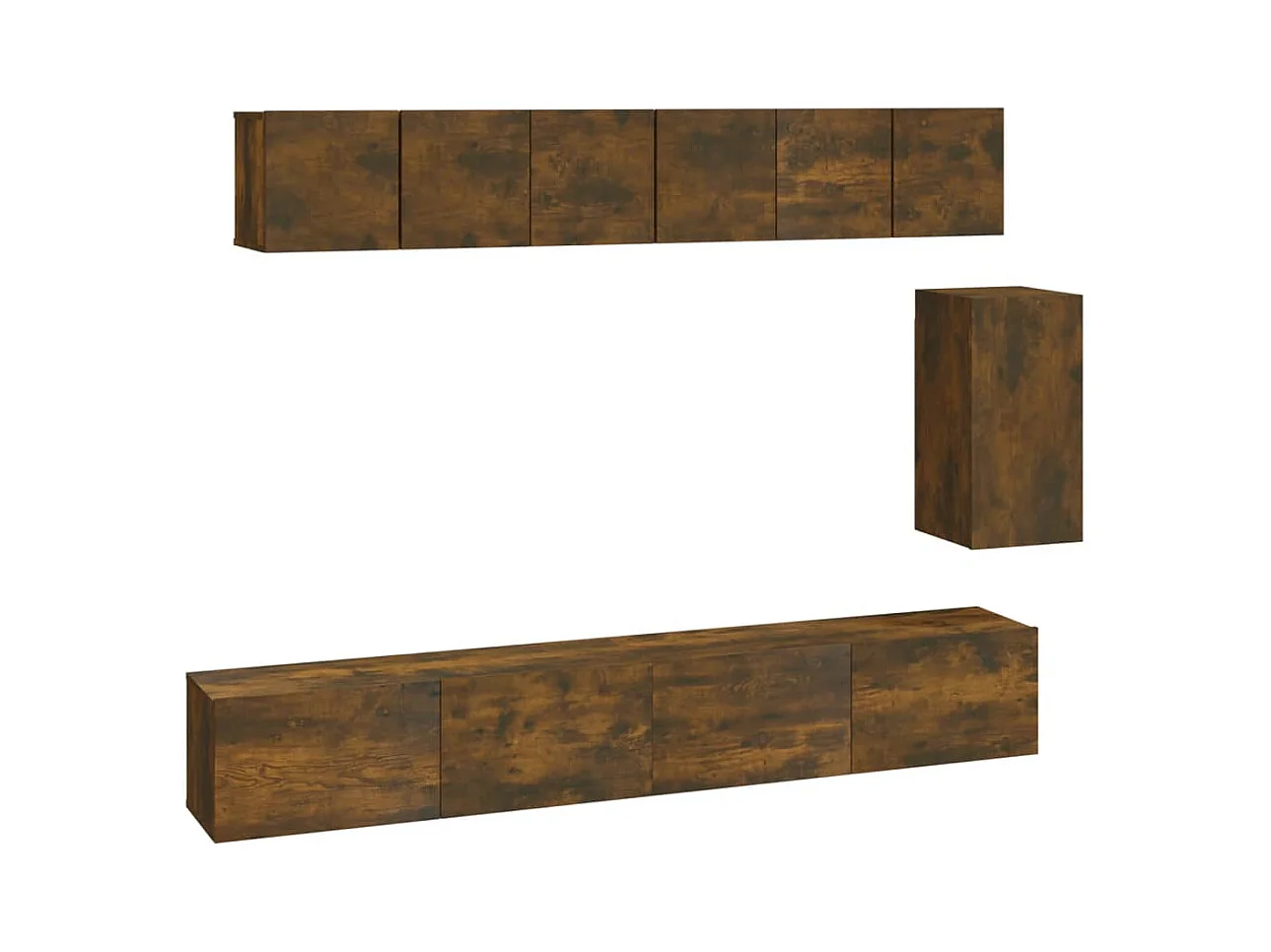 7-delige Tv-meubelset | Tv-Bank | TV-kast bewerkt hout gerookt eikenkleurig