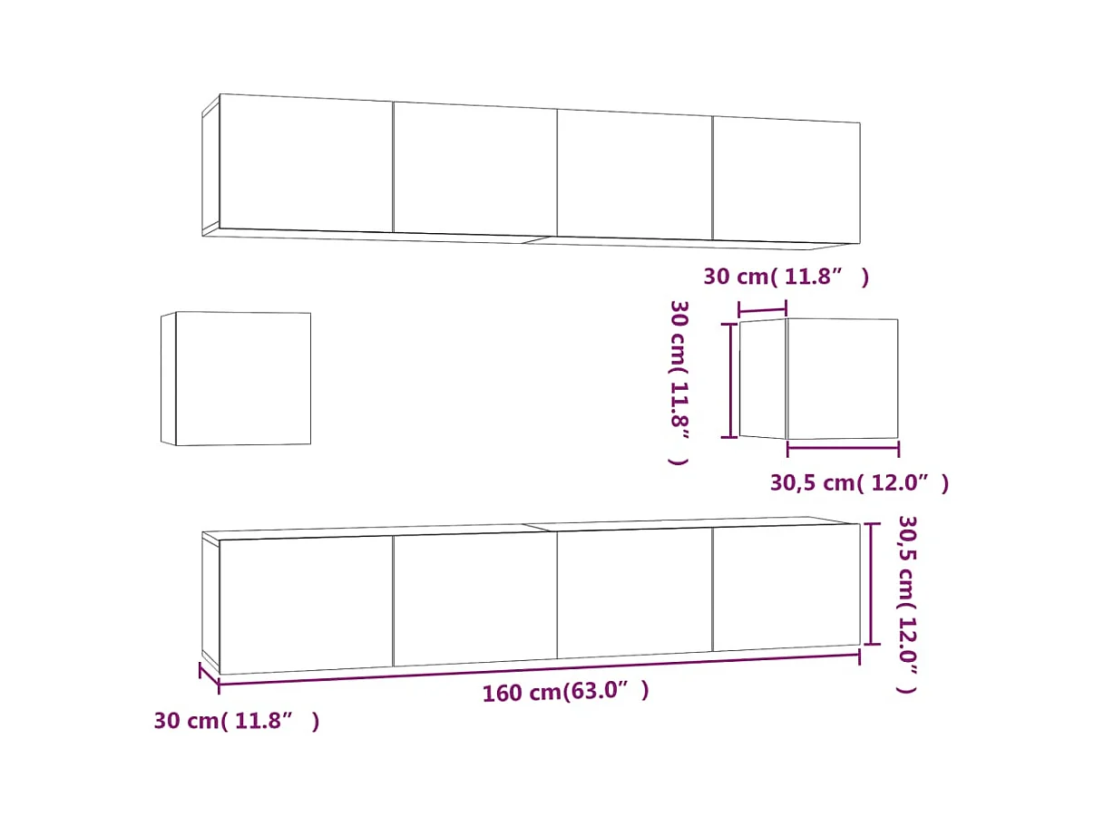 TV-kast 4 stuks Zwart 80x30x30 cm Bewerkt hout
