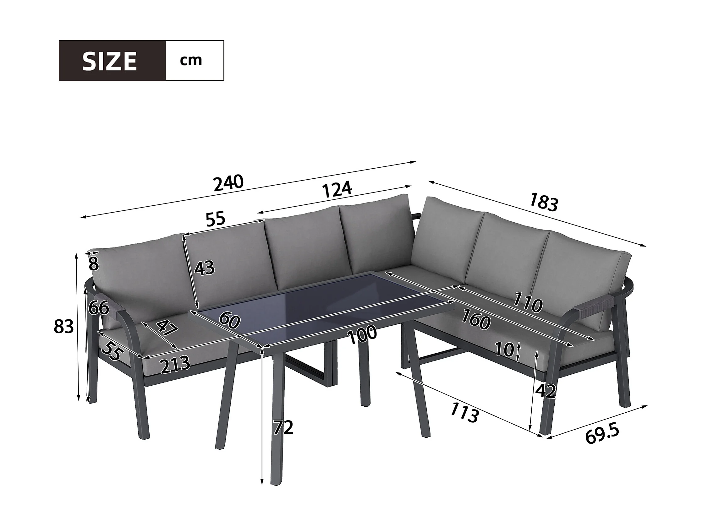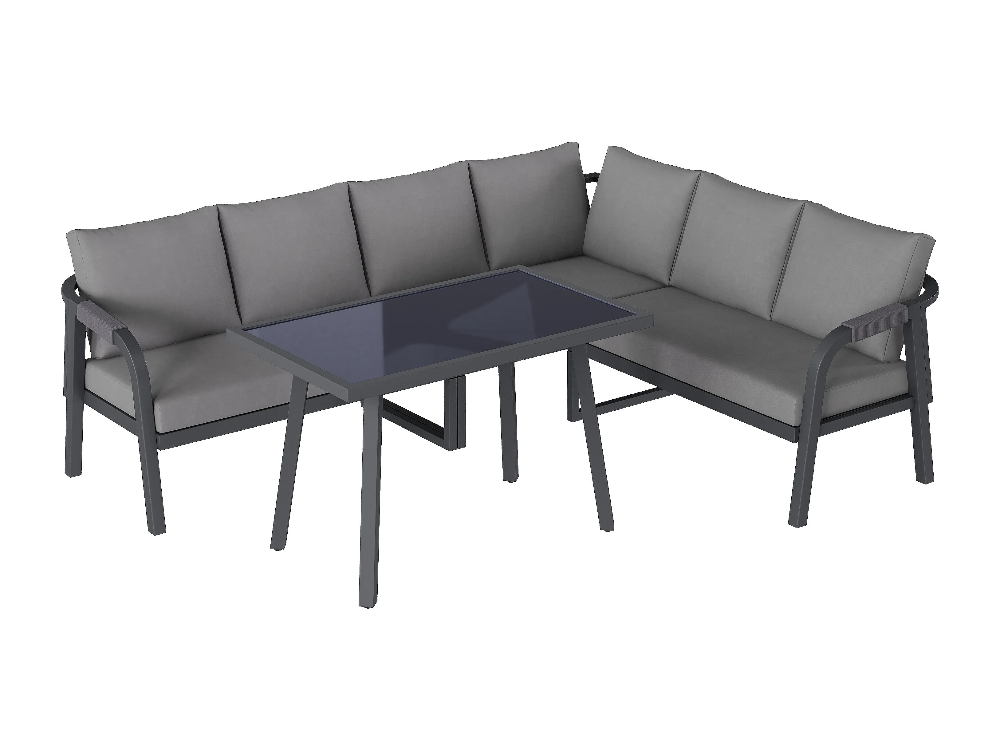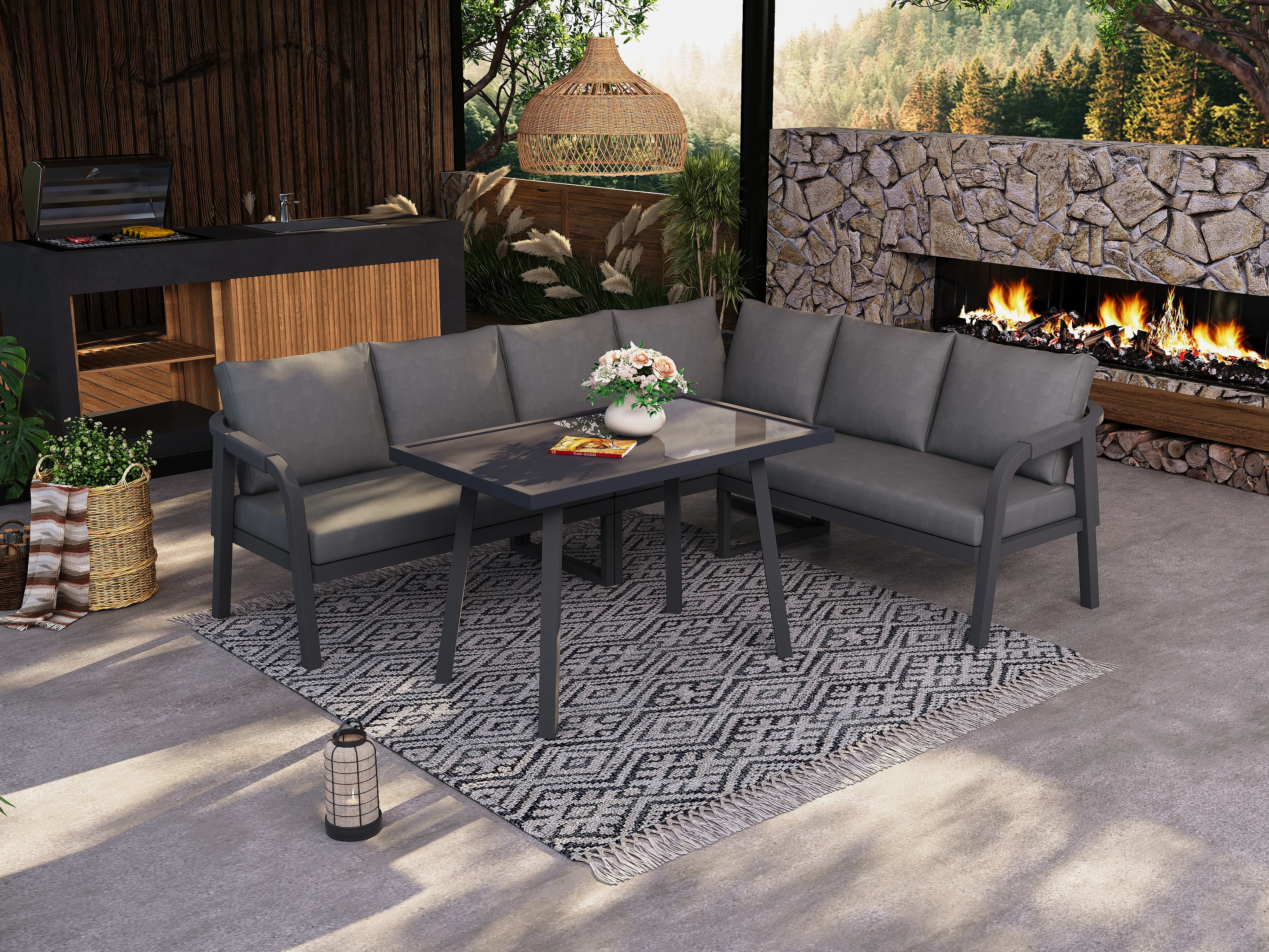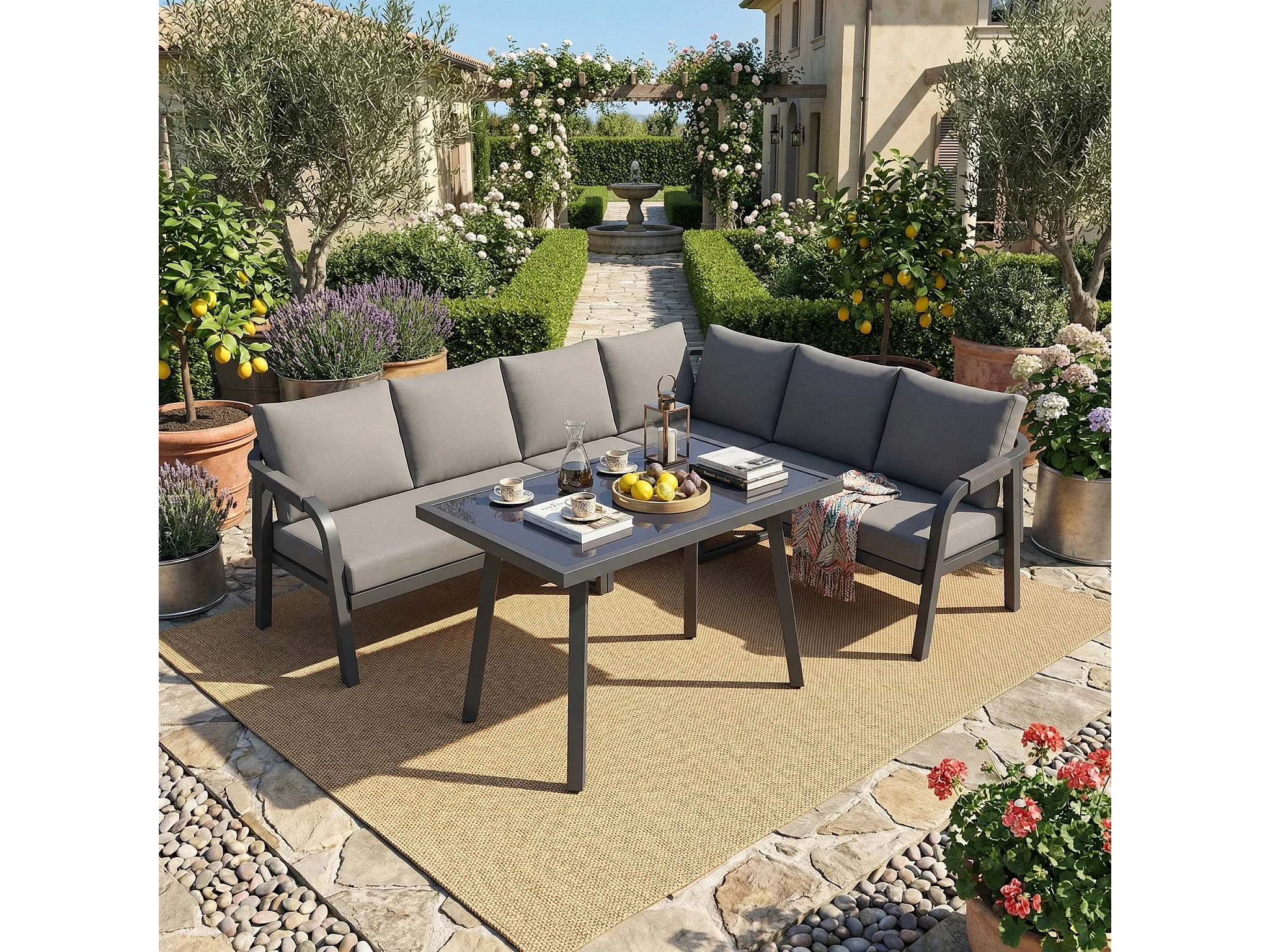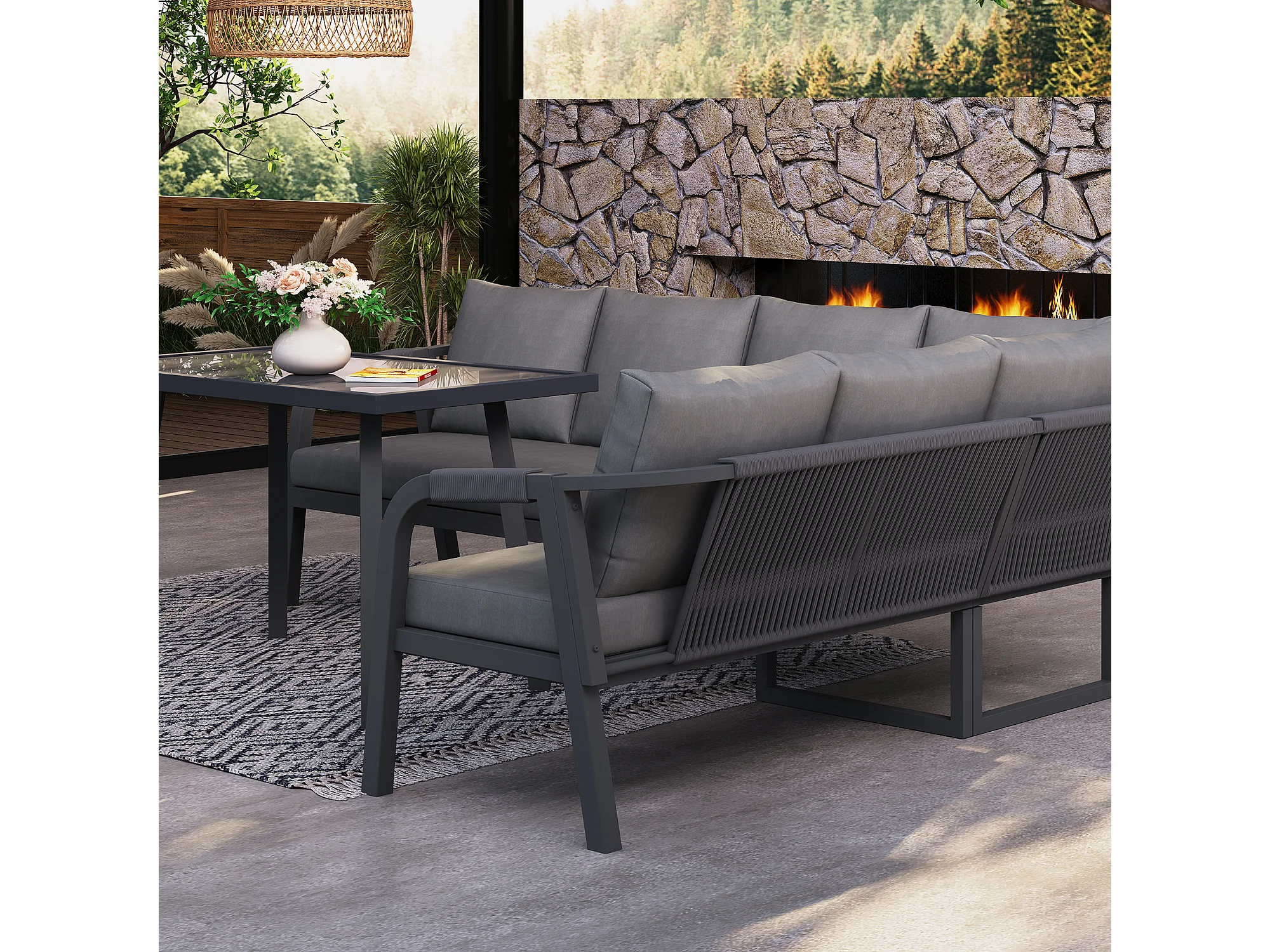 6-persoons tuinset - met geweven armleuningen en rugleuningen + hoekbank + tafel - metaal - grijs