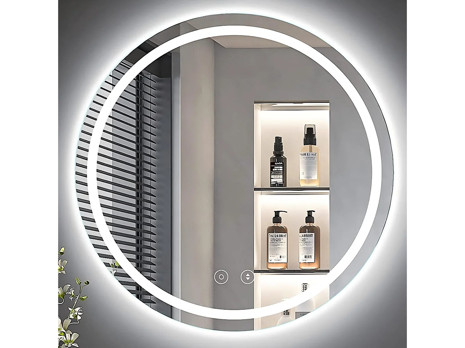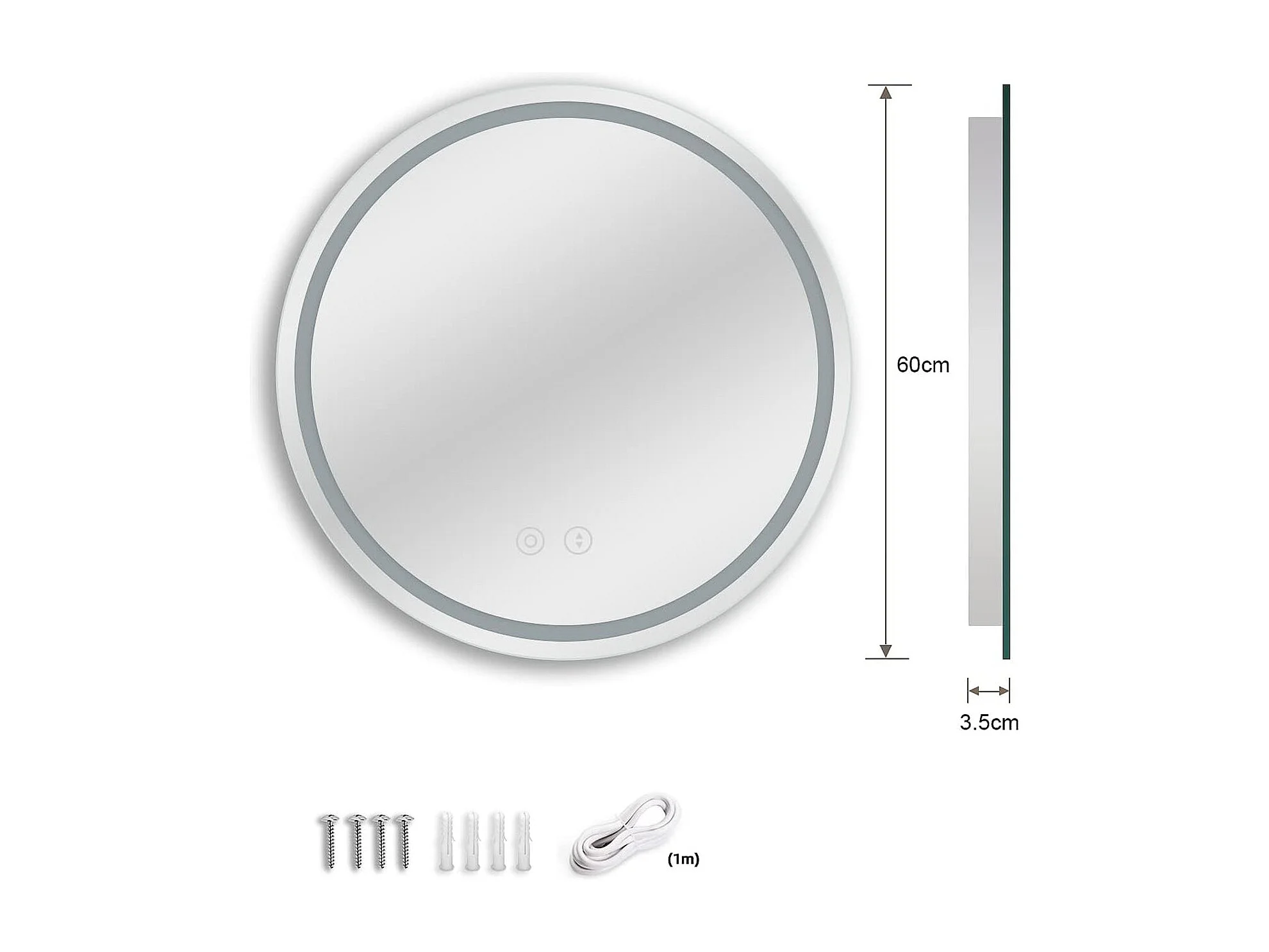 60cm ronde LED spiegel met verlichting, anti-condens, 3 kleuren, dimbaar, geheugen, HD gehard glas, aanraakschakelaar, IP44 waterdicht
