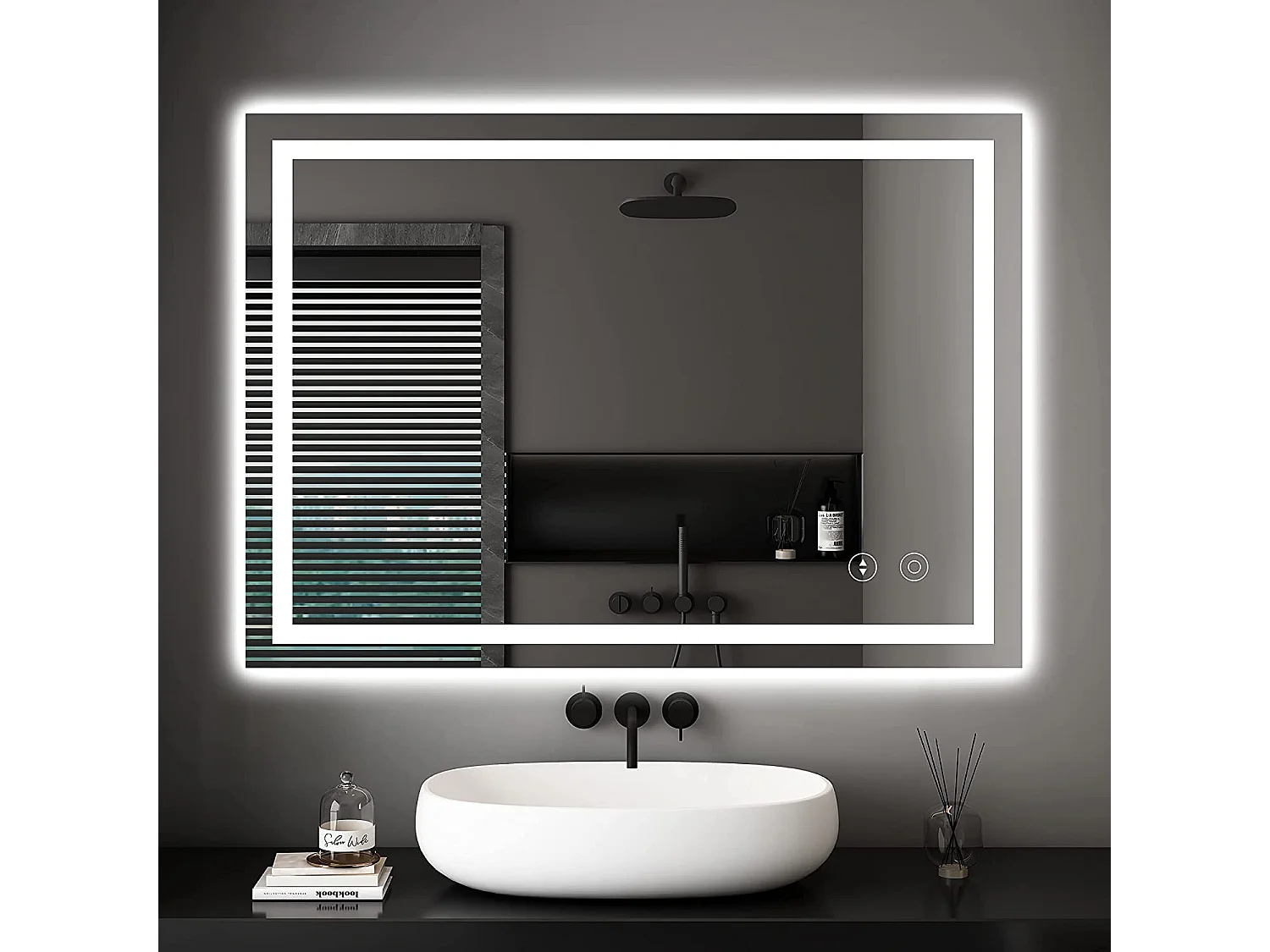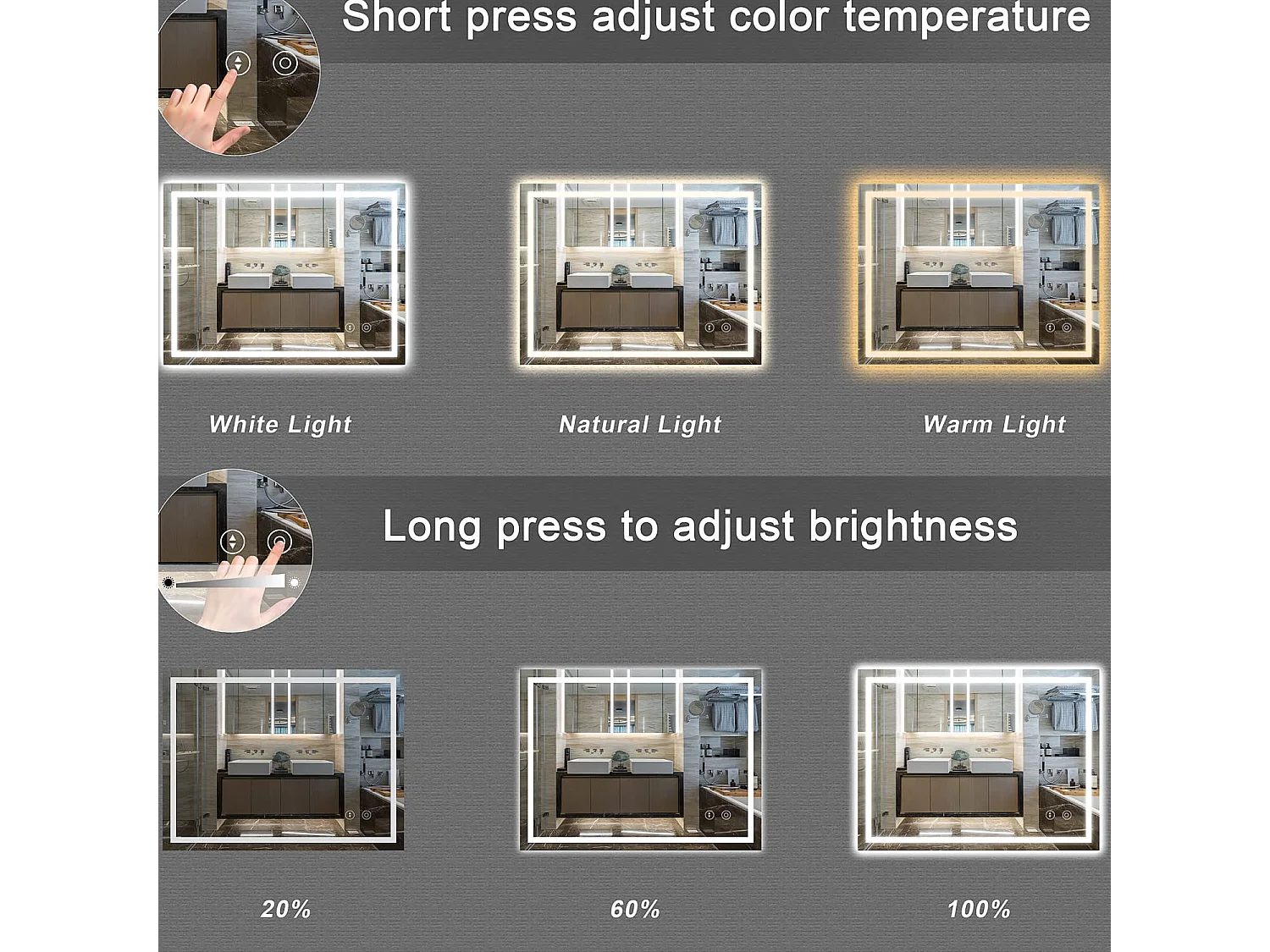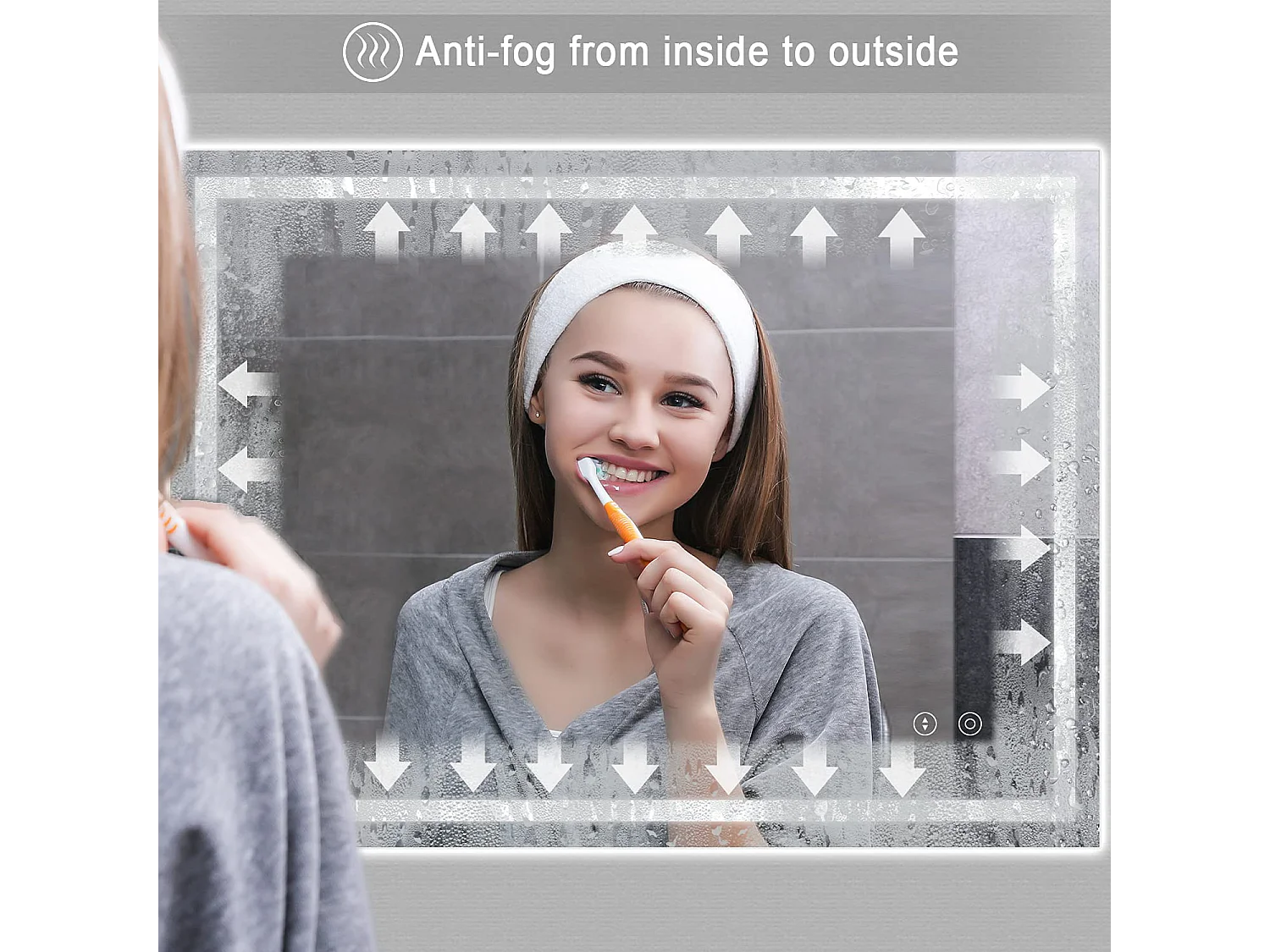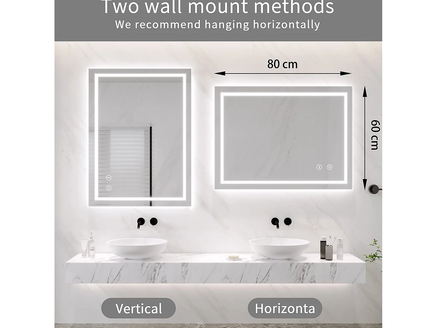 60x80cm LED badkamerspiegel, 30W, anticondens, 3 kleuren, dimbaar, aanraakschakelaar, explosieveilig, geheugenfunctie, IP44 waterdicht
