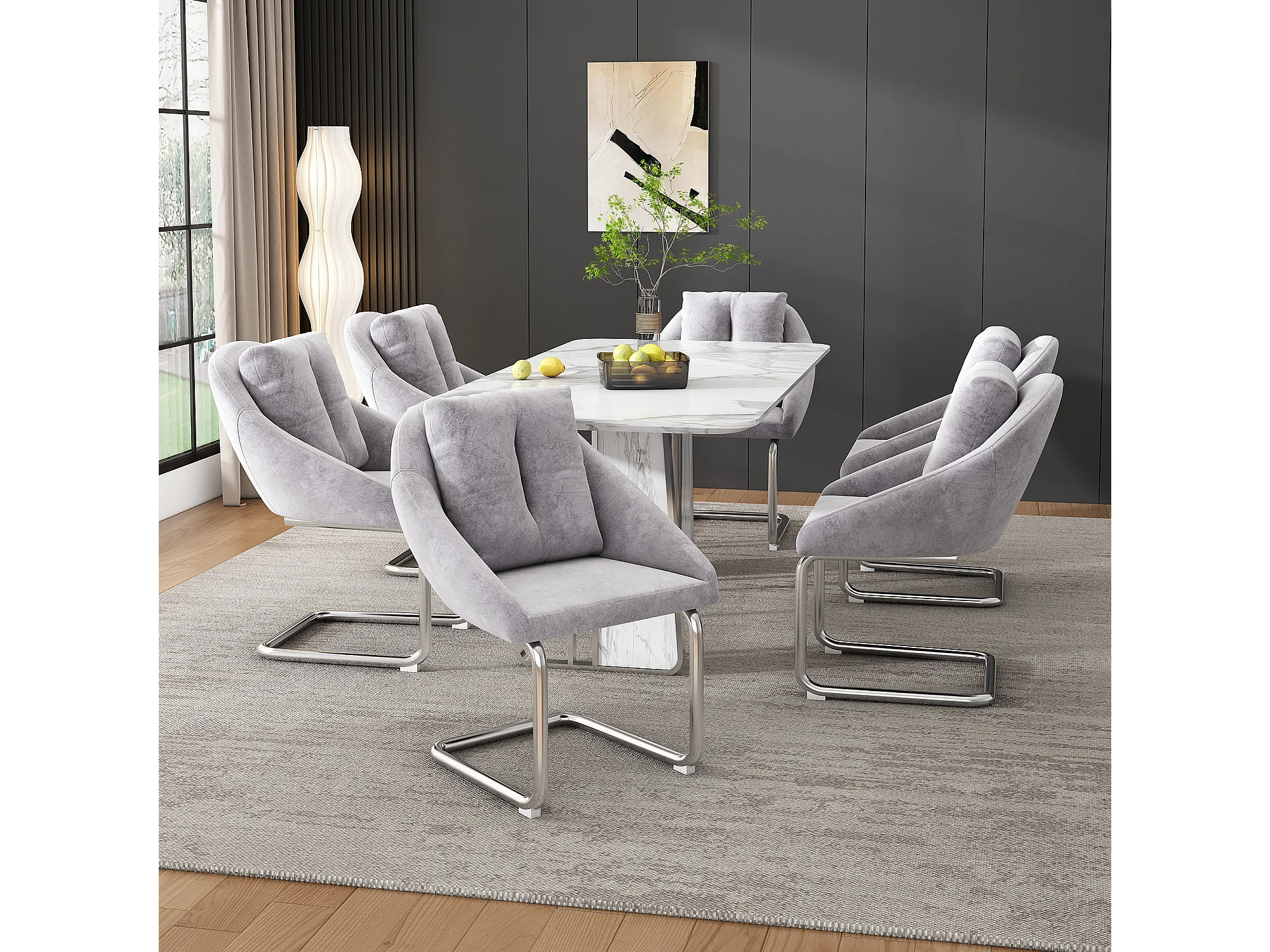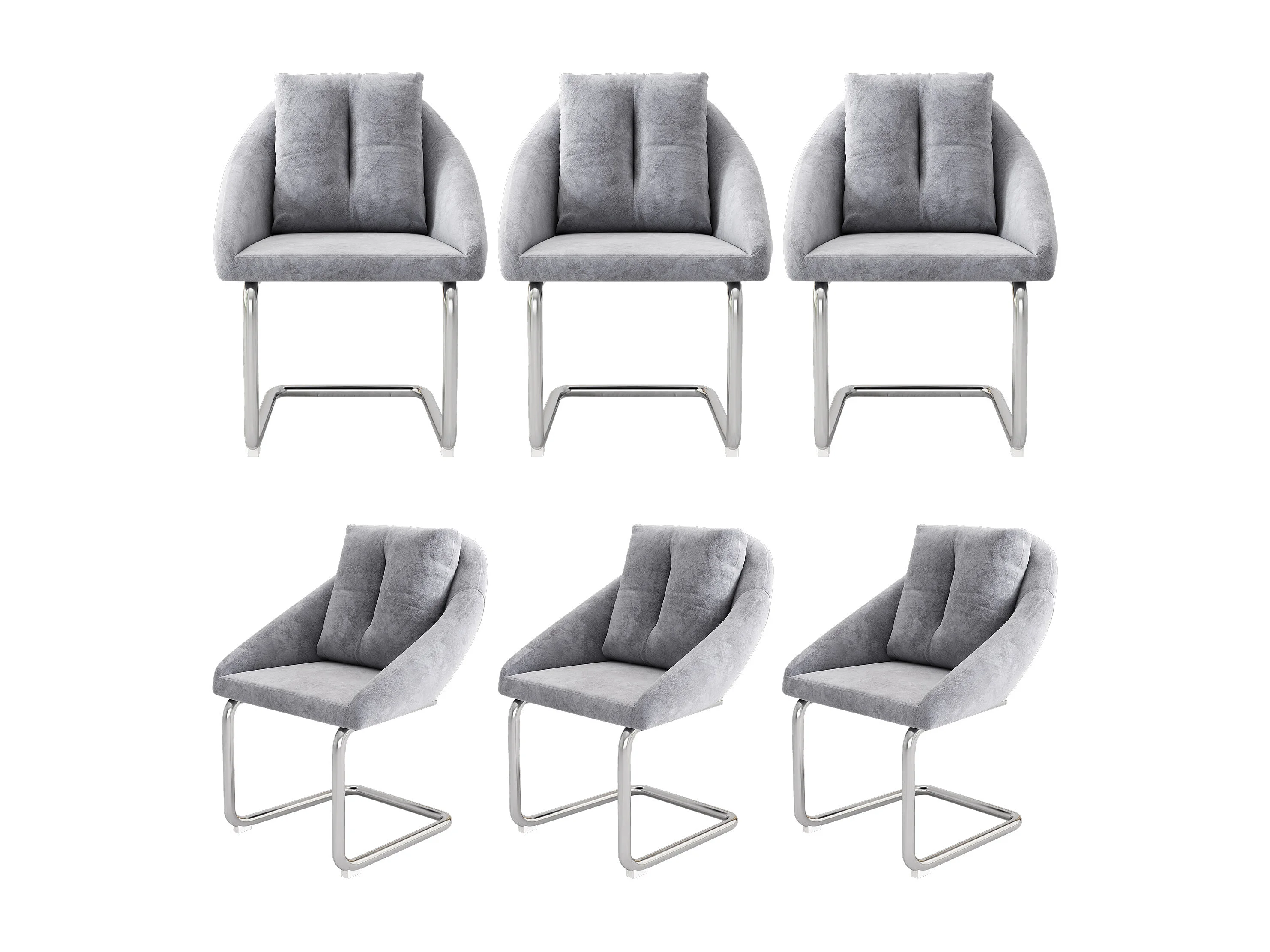 6er-Set Stühle mit Kissen – Gebogene Metallbeine – Grauer Samt