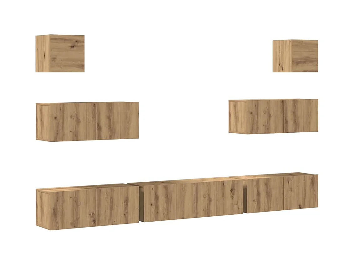7-delig Tv-meubelset | Tv-Bank | TV-kast wandmontage bewerkt hout artisanaal eiken