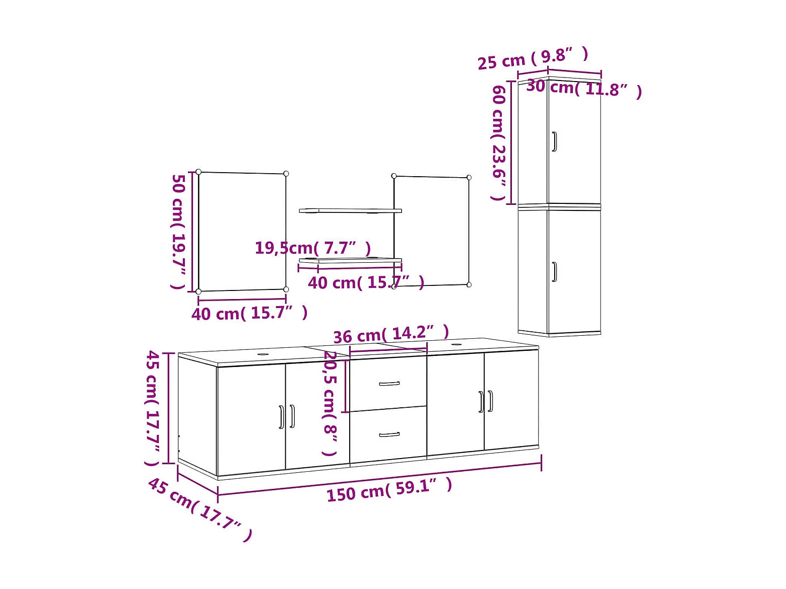 7-delige Badkamermeubelset bewerkt hout zwart
