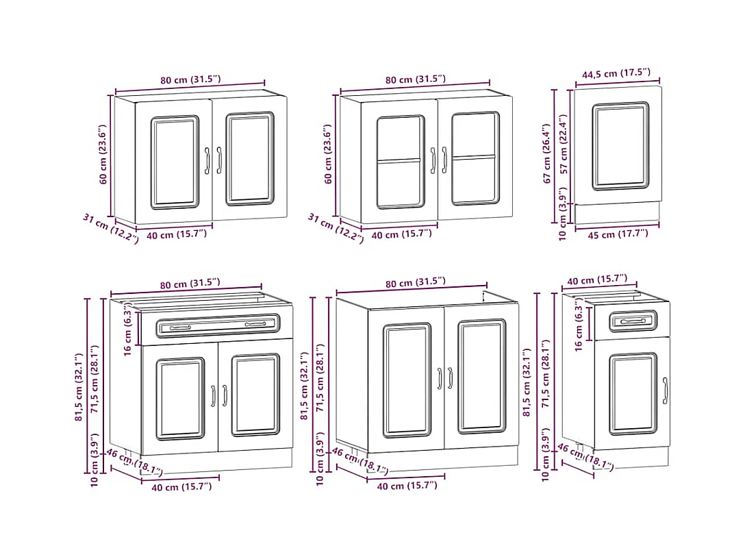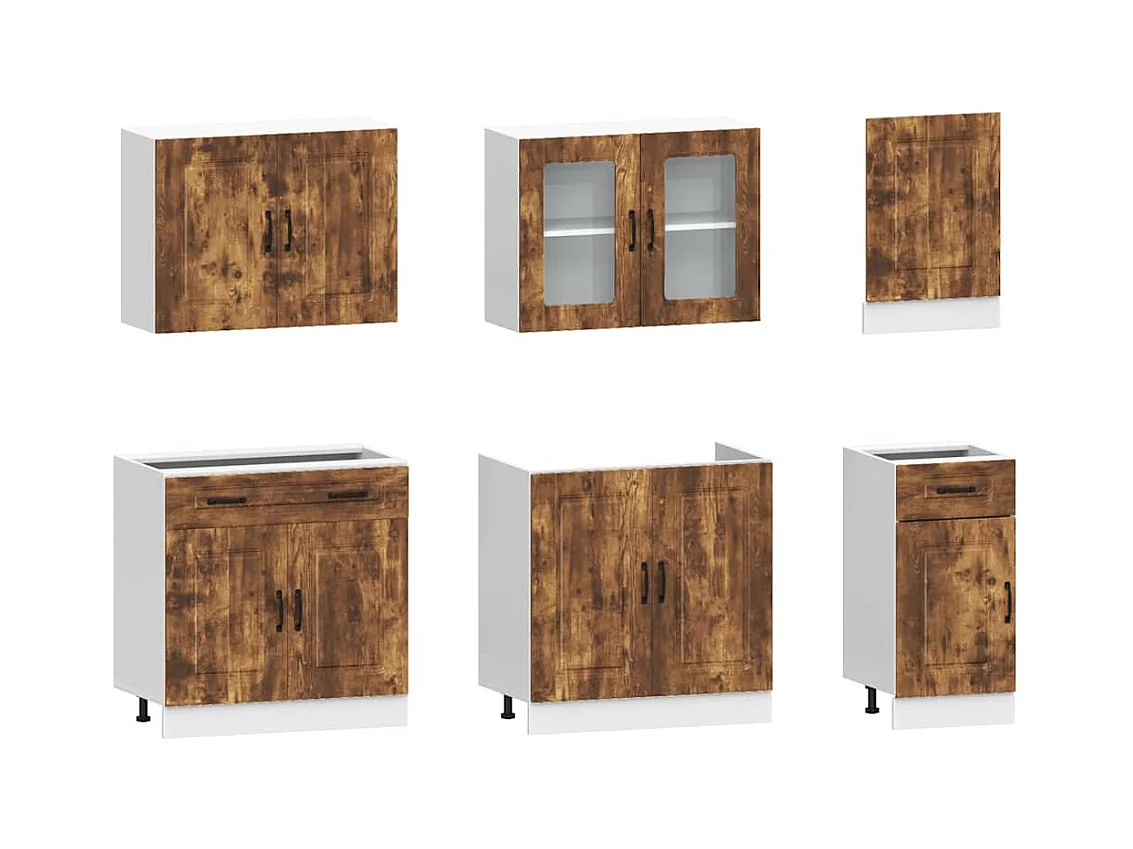 7-delige Keukenkastenset Kalmar bewerkt hout gerookt eiken