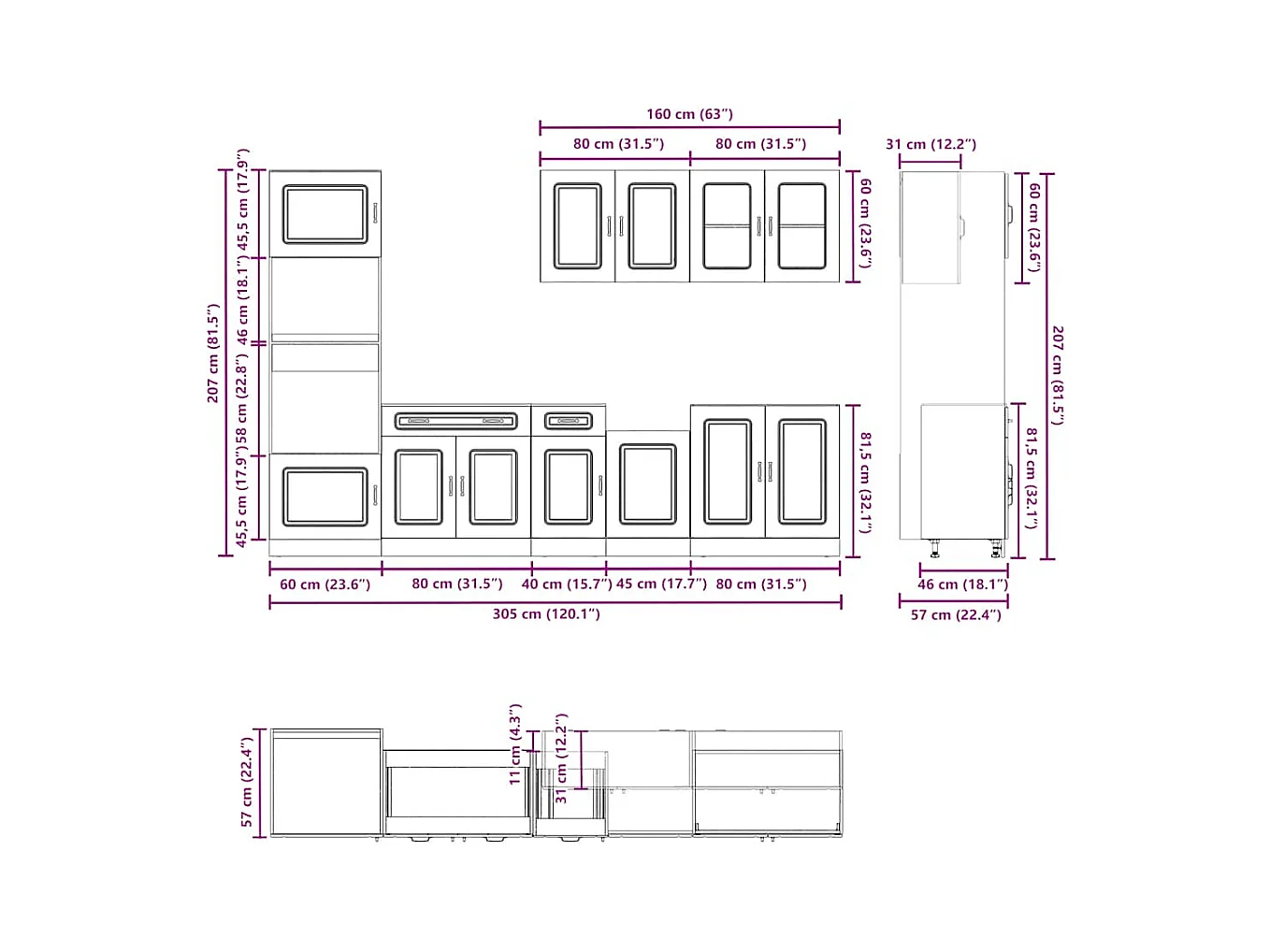 11-delige Keukenkastenset Lucca bewerkt hout sonoma eikenkleur