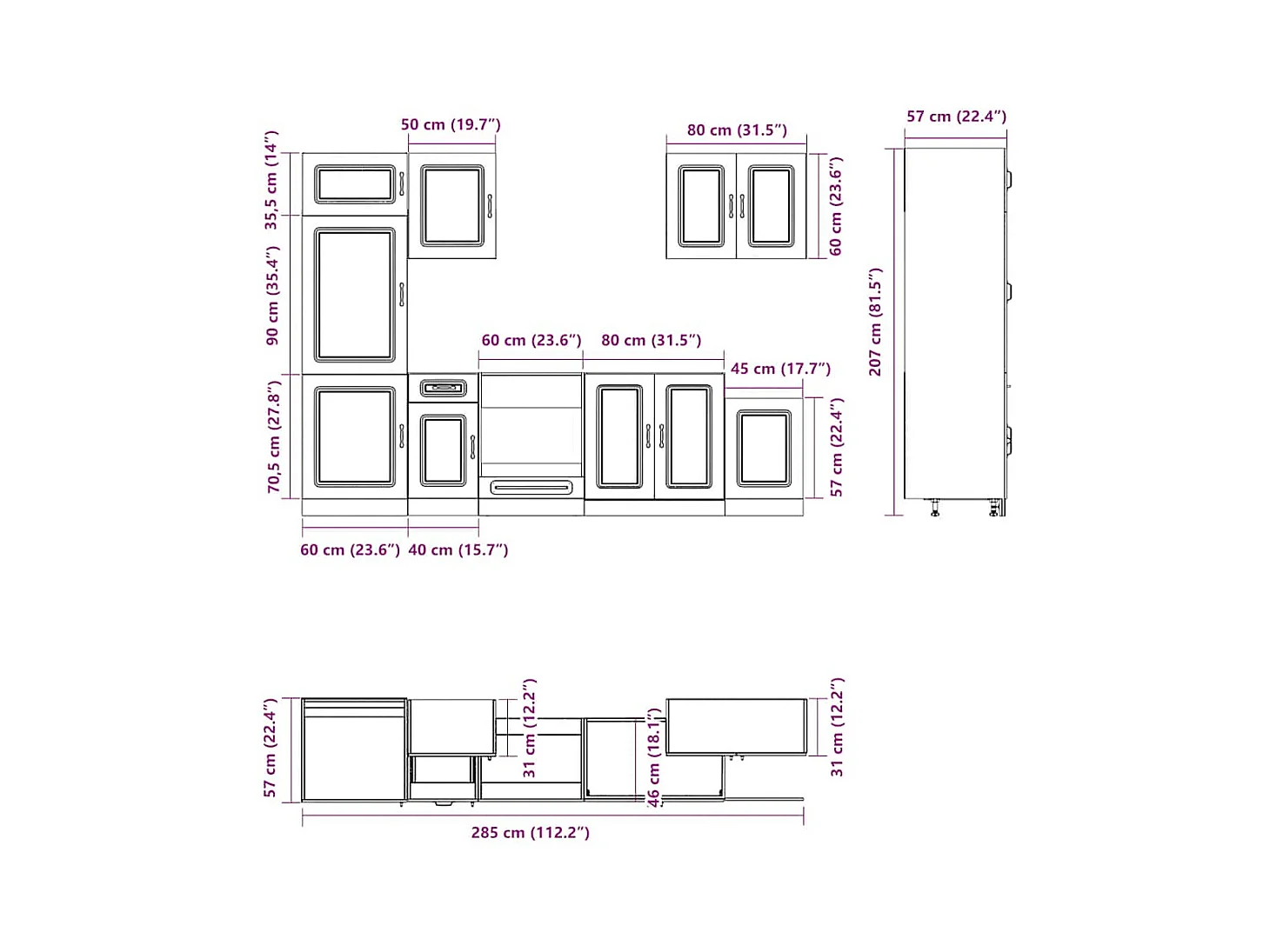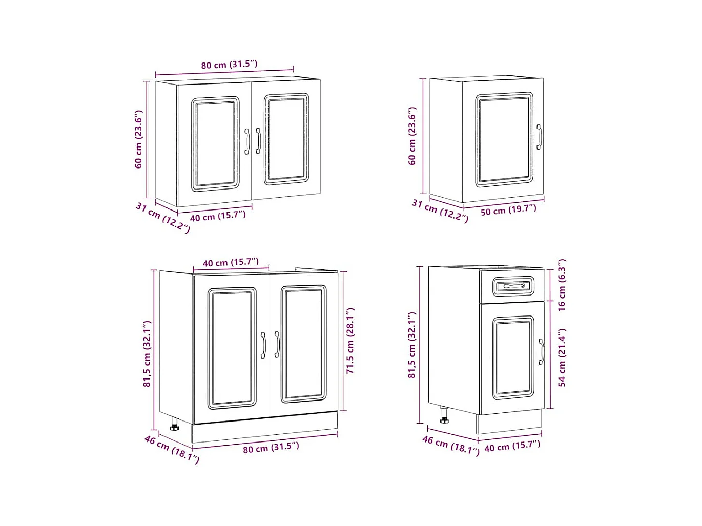7-delige Keukenkastenset Kalmar bewerkt hout wit