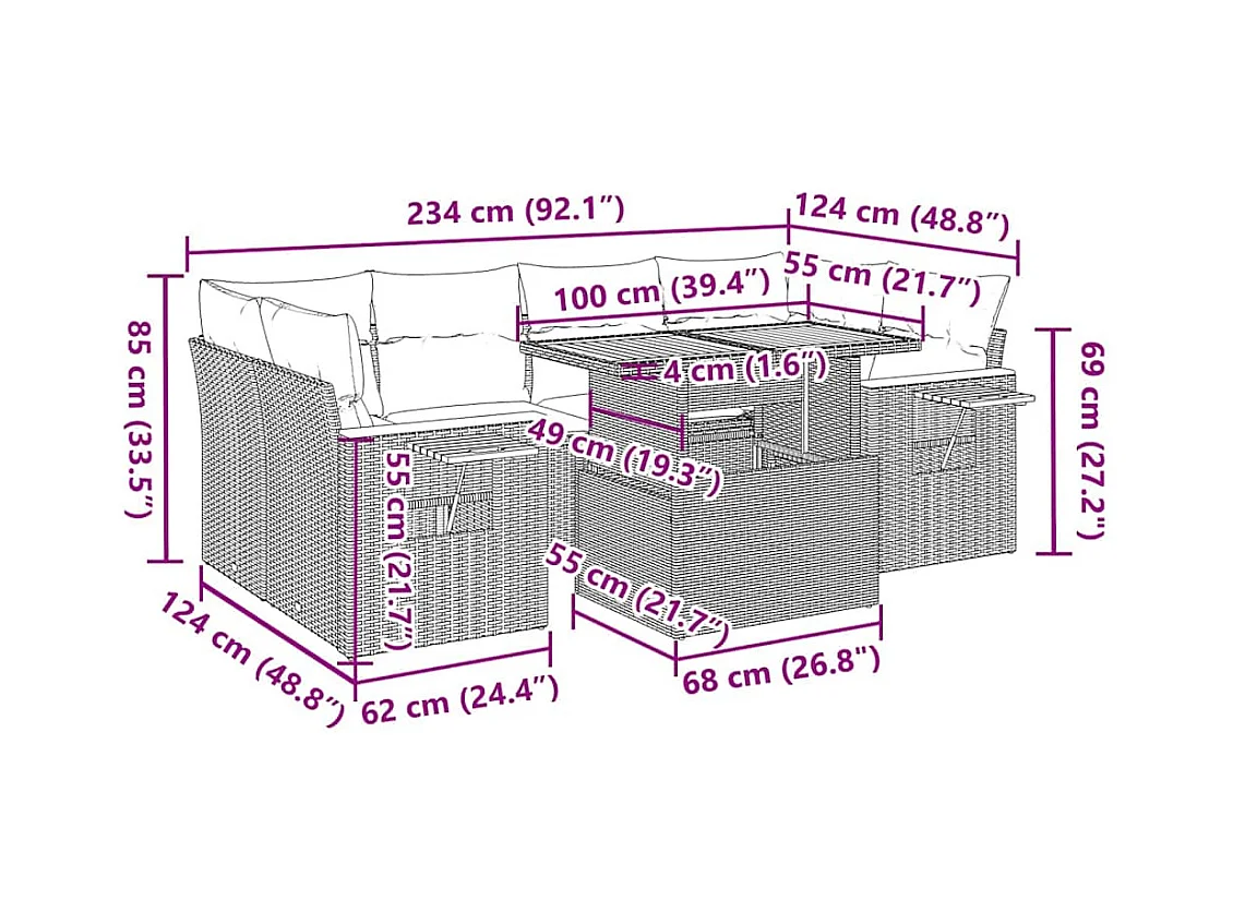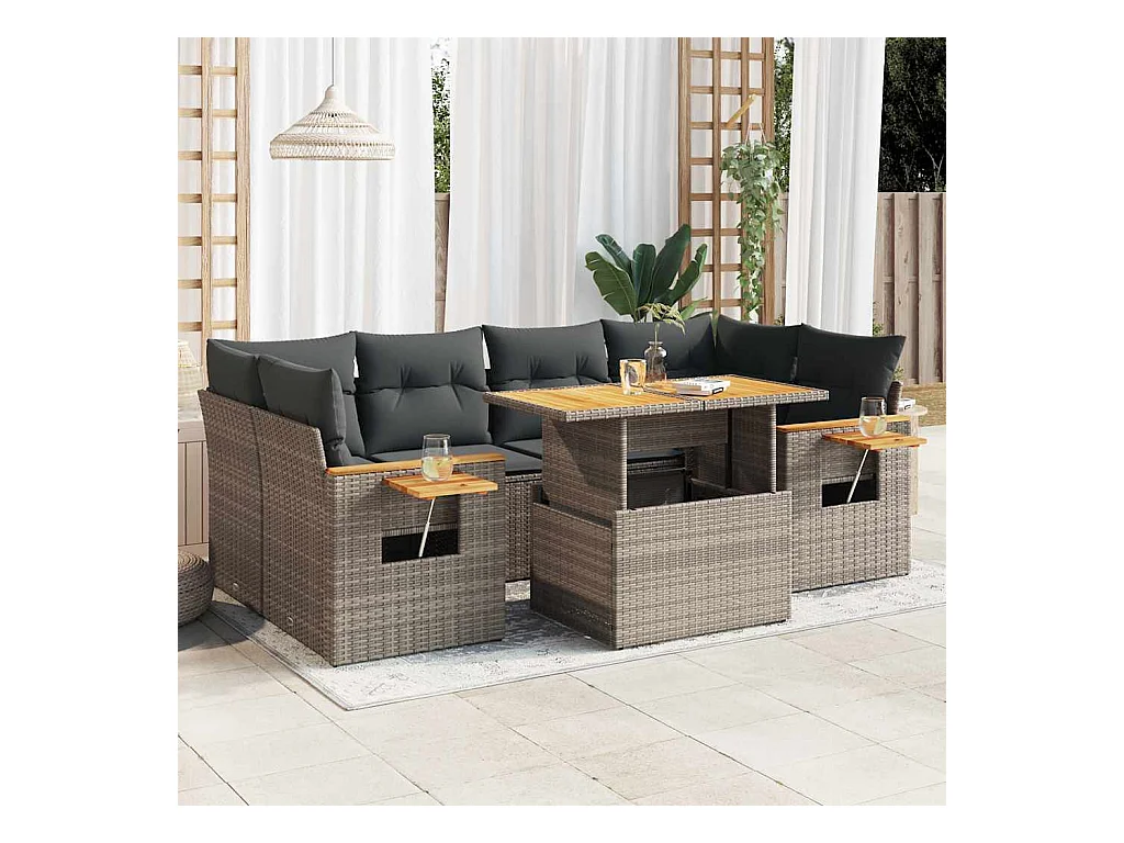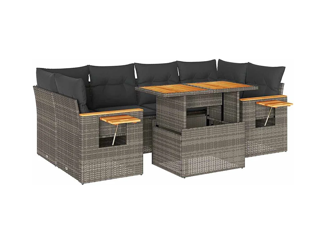 7-delige Loungeset met kussens poly rattan acacia grijs