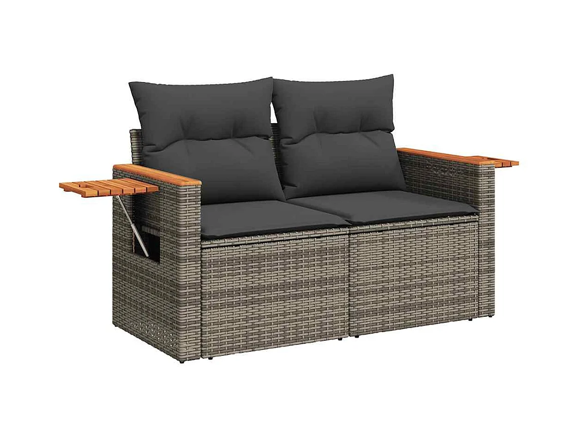 2-delige Loungeset met kussens poly rattan acacia grijs