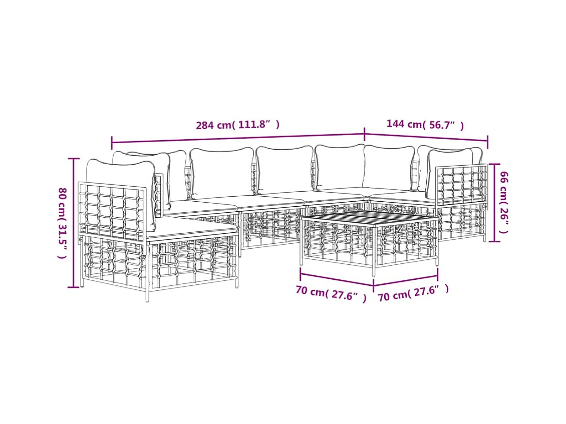 7-delige Loungeset met kussens poly rattan antracietkleurig