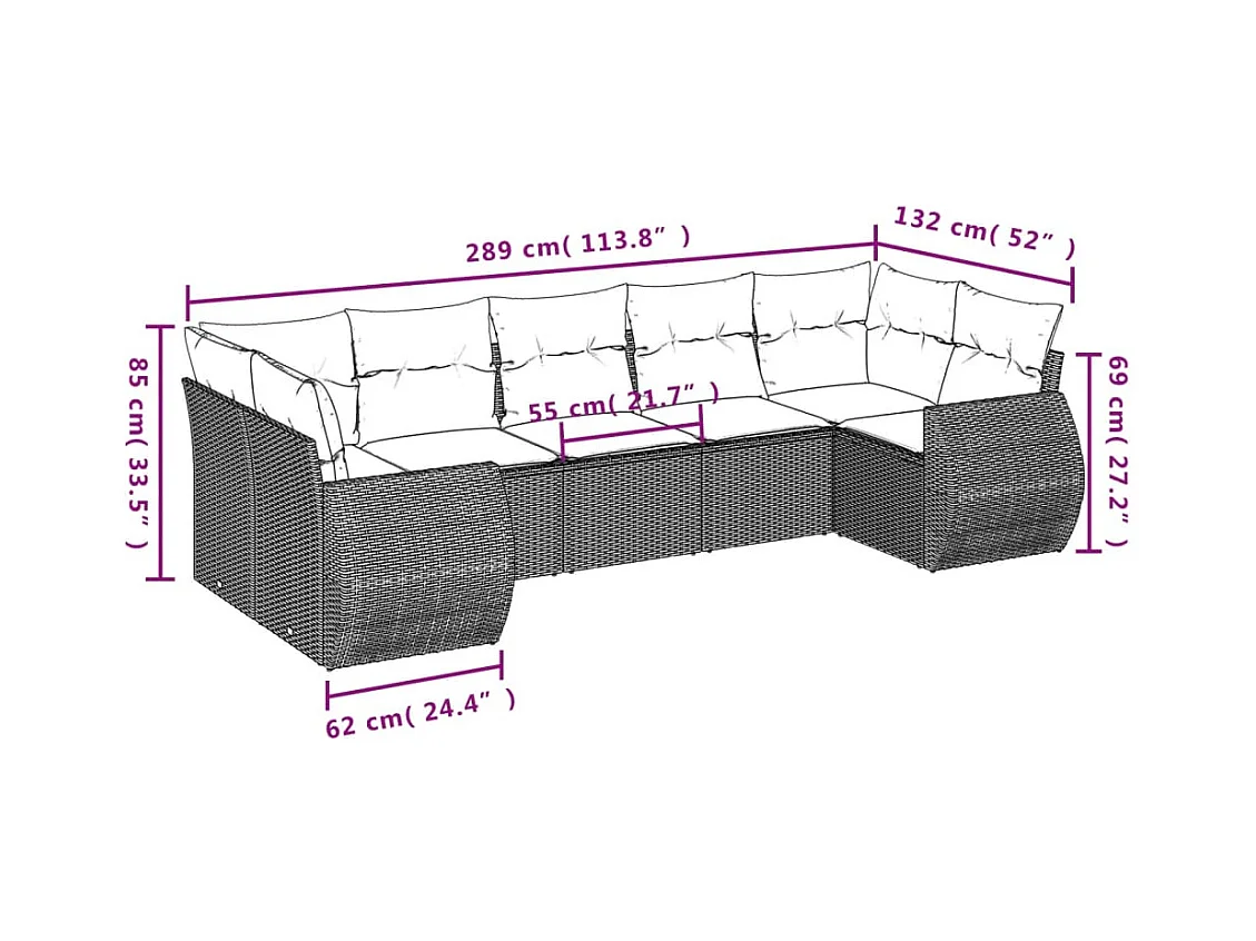 2-delige Loungeset met kussens poly rattan acacia bruin