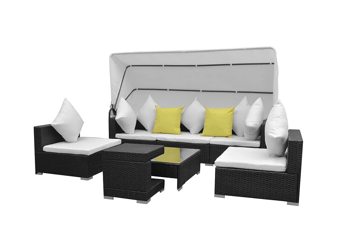 7-delige Tuinset inklapbaar staal poly rattan zwart