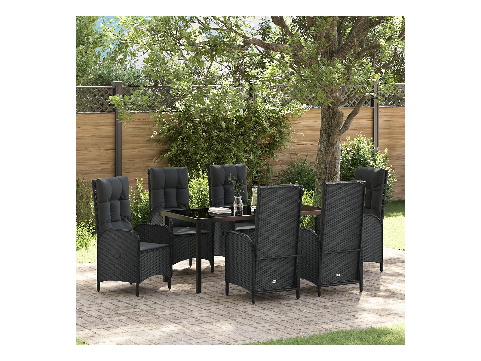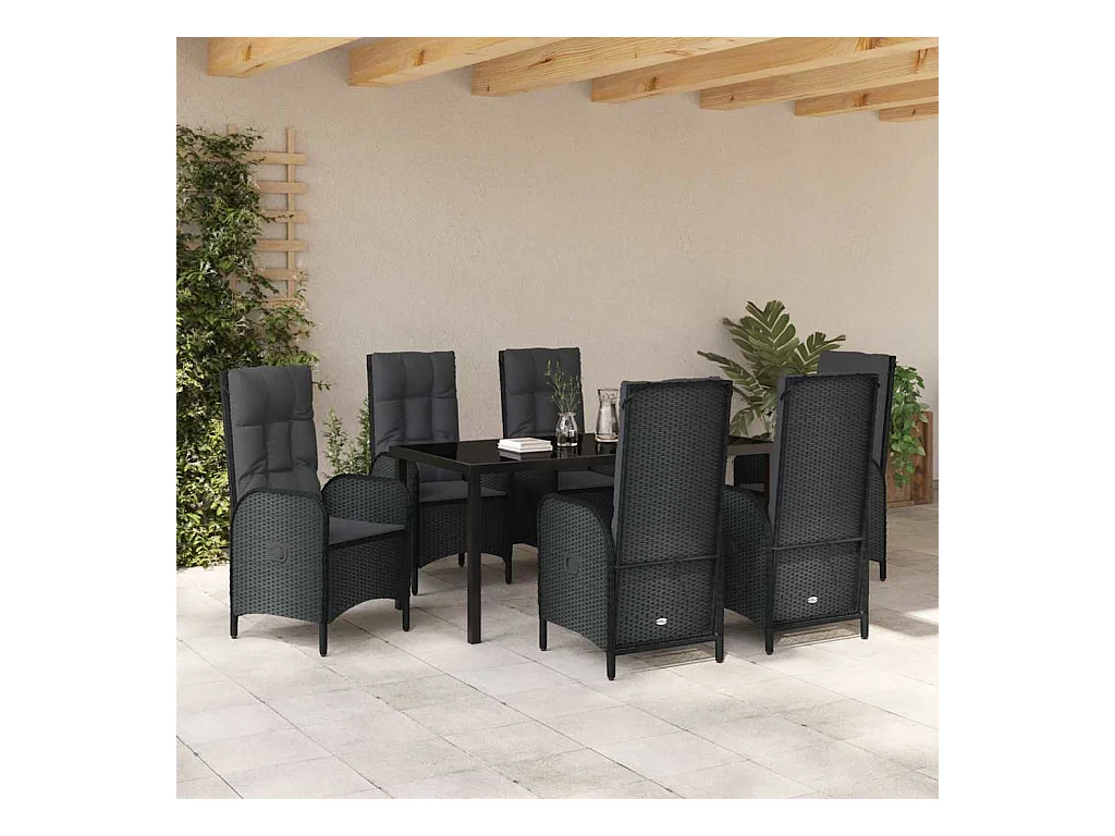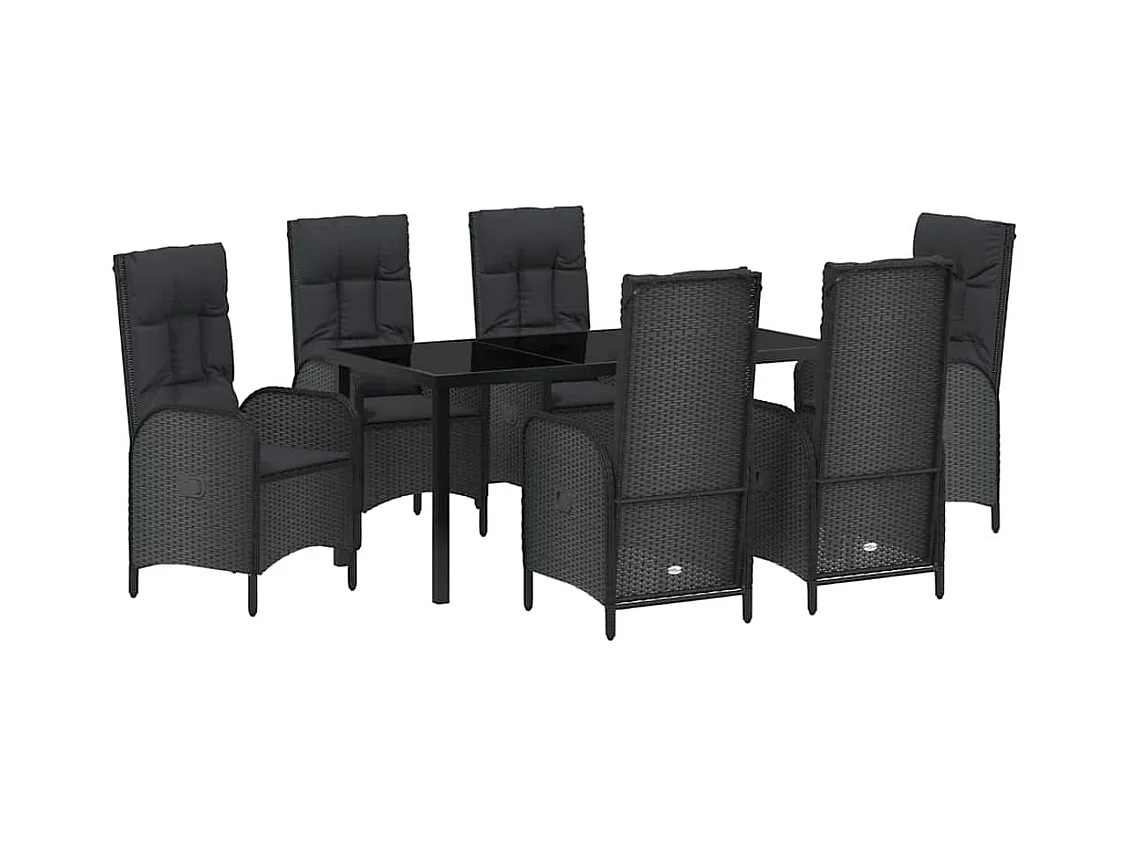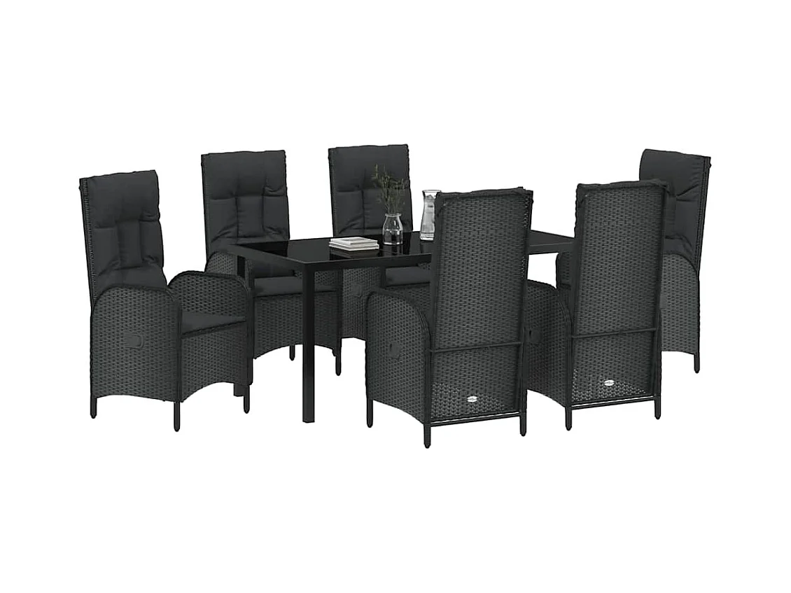 7-delige tuinset met zwarte polyrotan kussens
