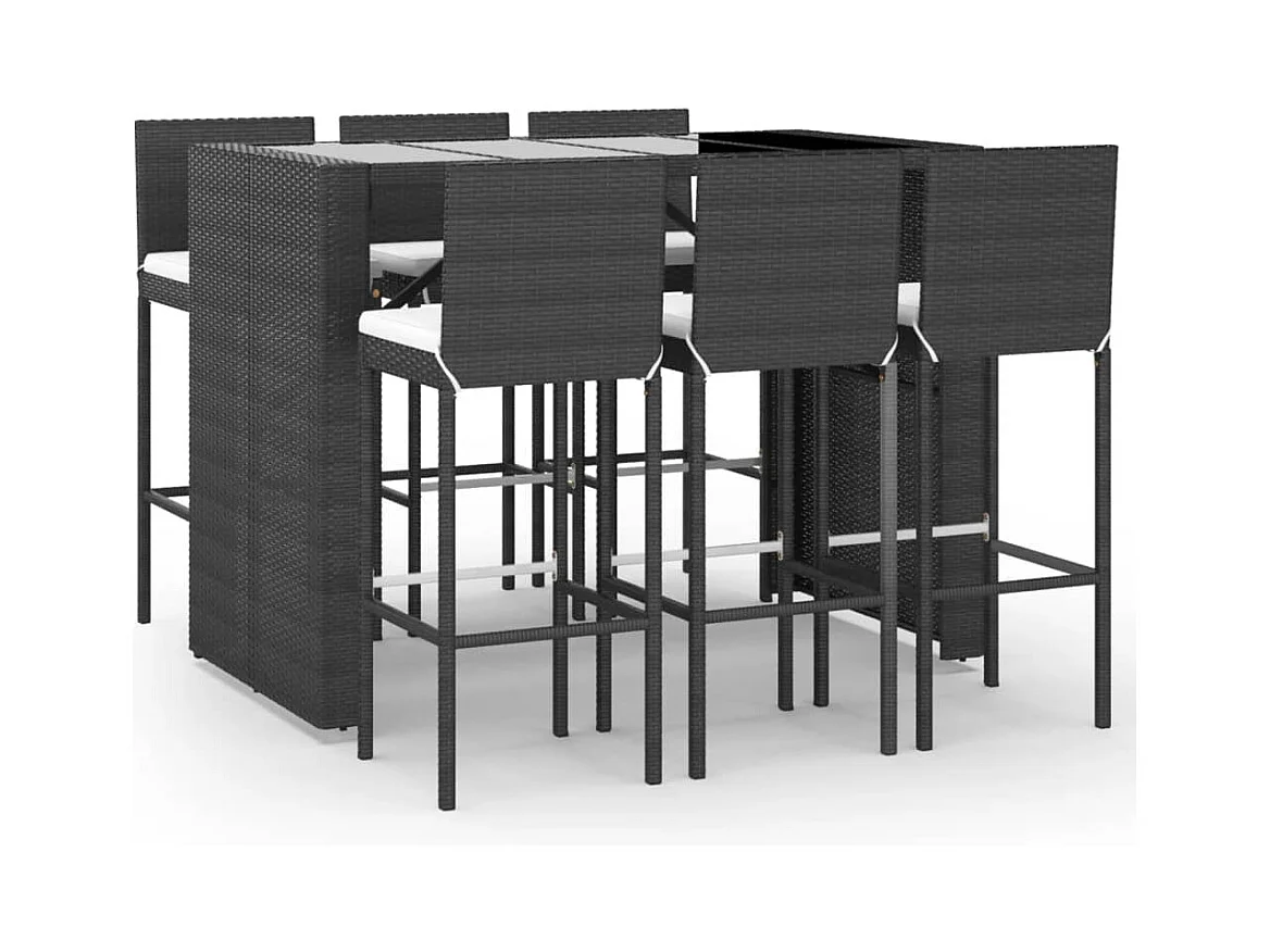9-delige Tuinbarset poly rattan en massief acaciahout zwart