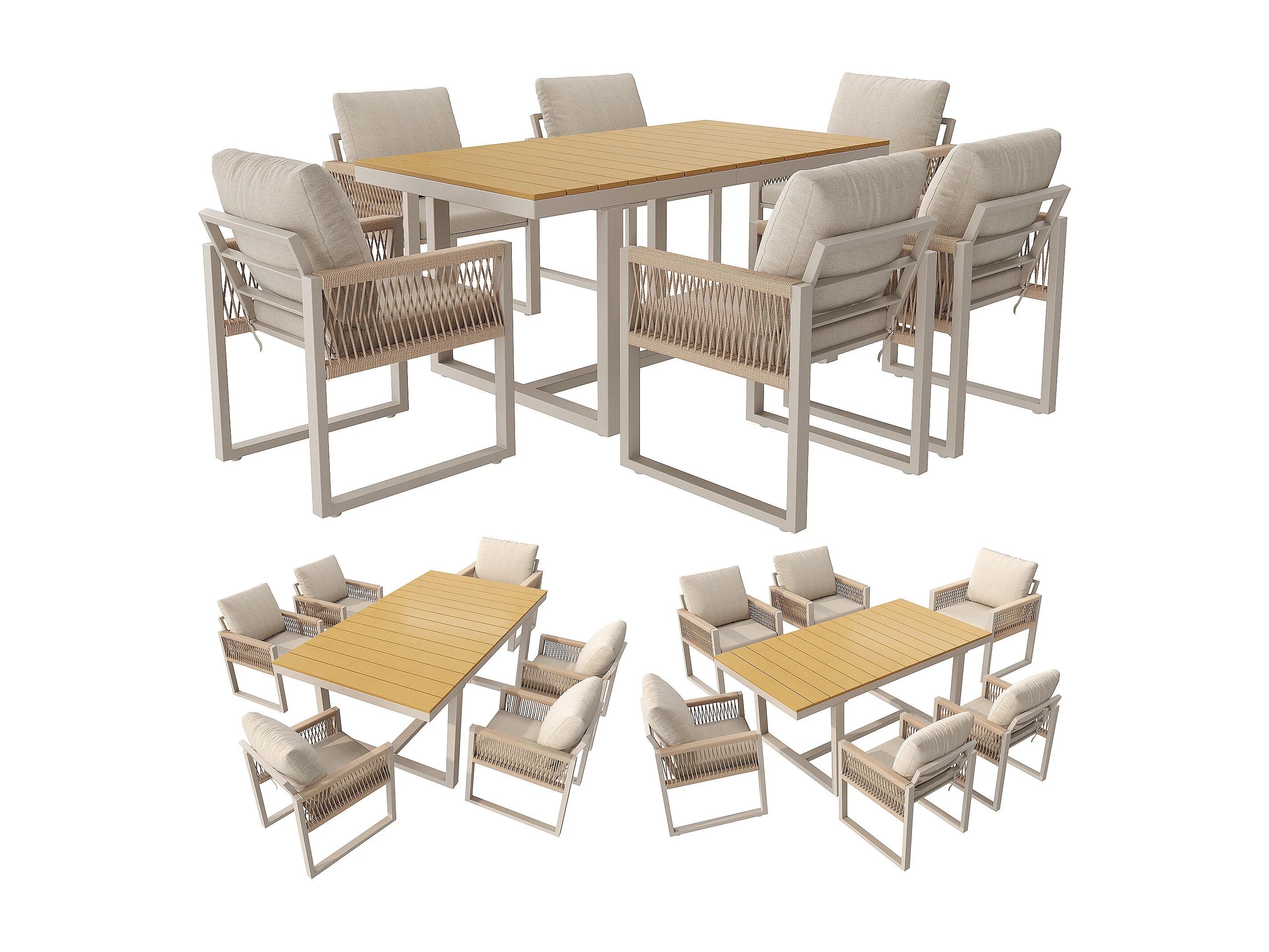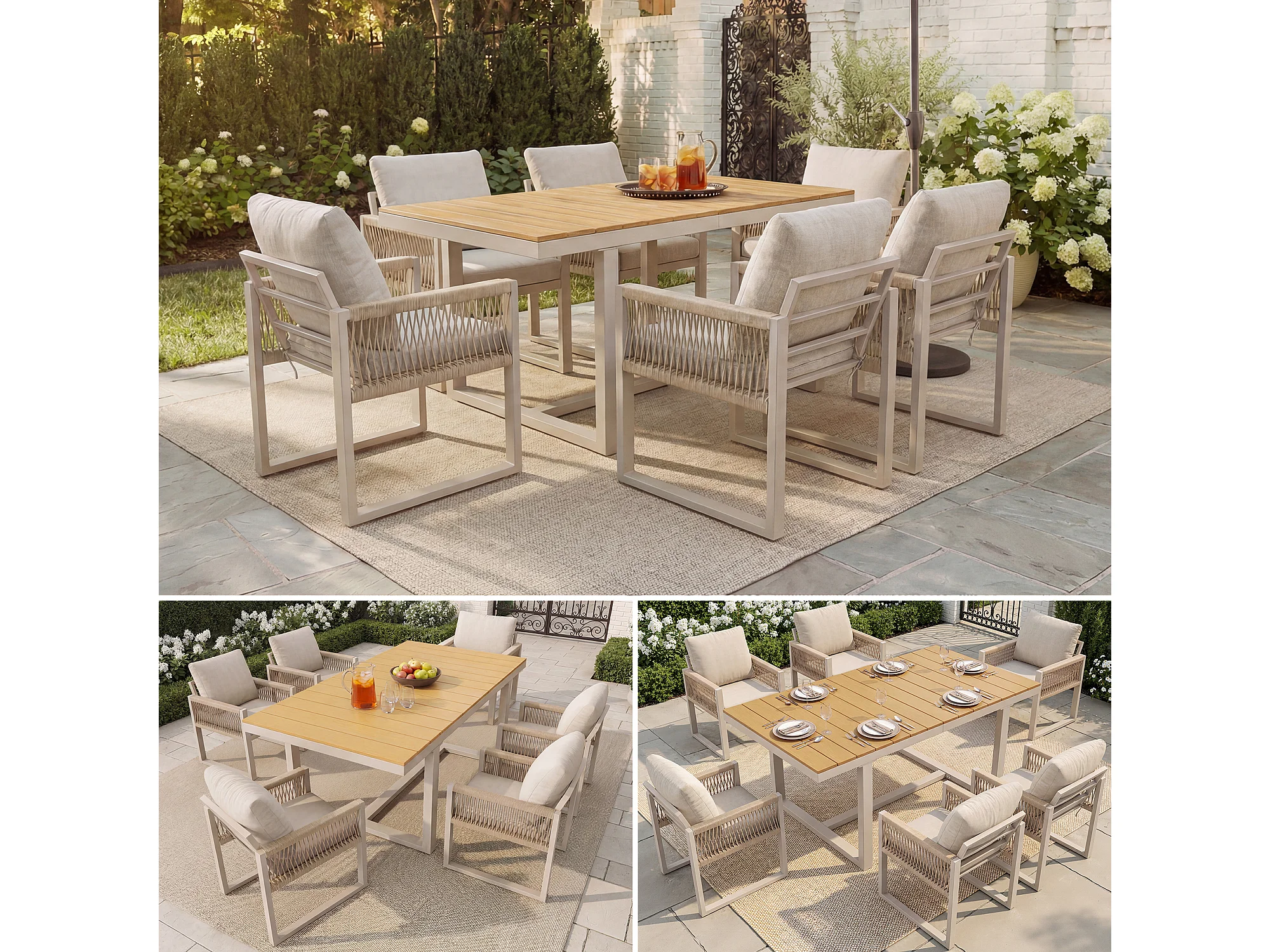 7-delige tuinset - 1 tafel en 6 stoelen - met touwvlechtwerk en kussens - Metaal - beige