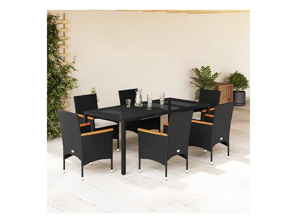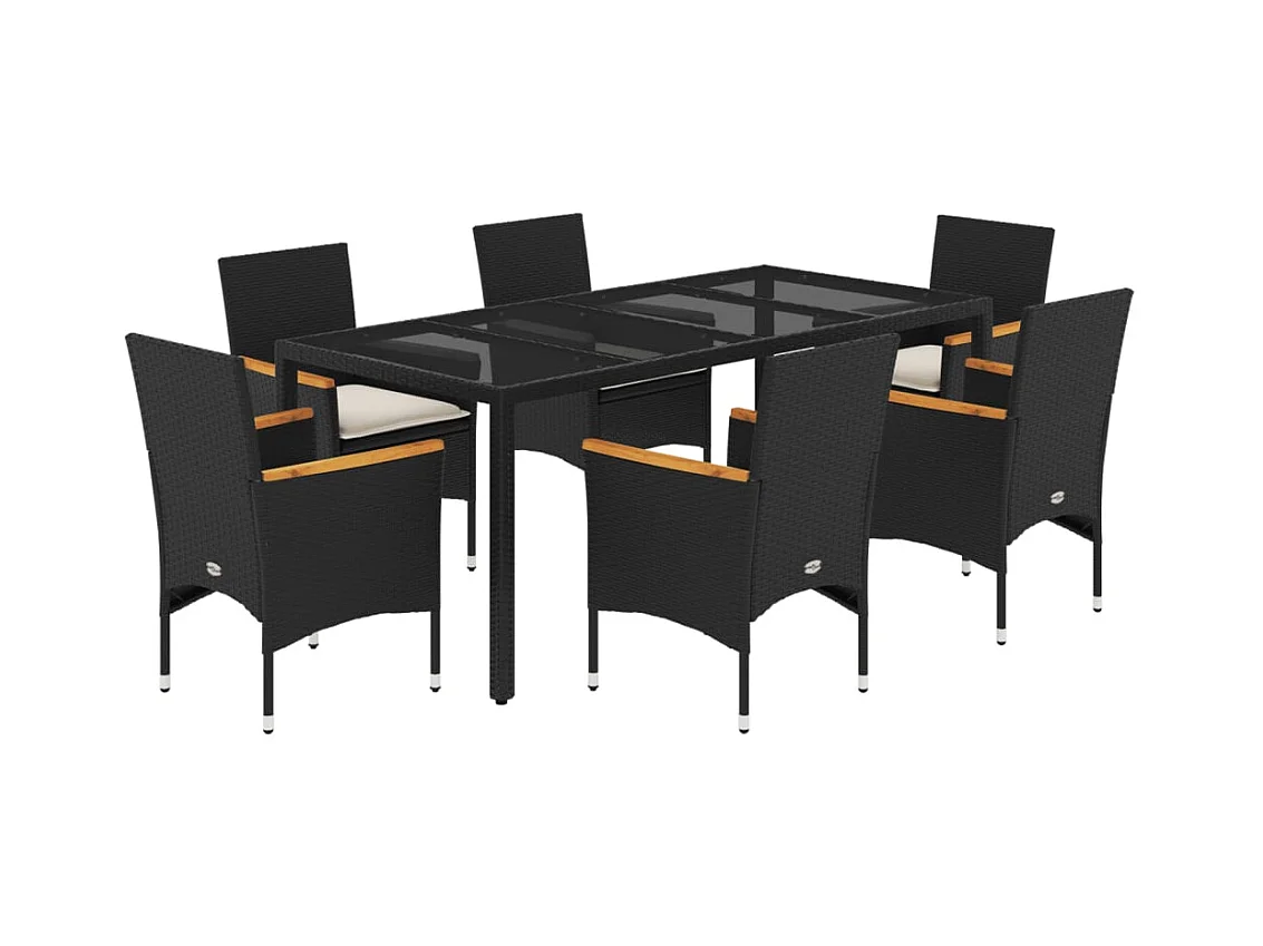 7-delige Tuinset met kussens poly rattan en acaciahout zwart