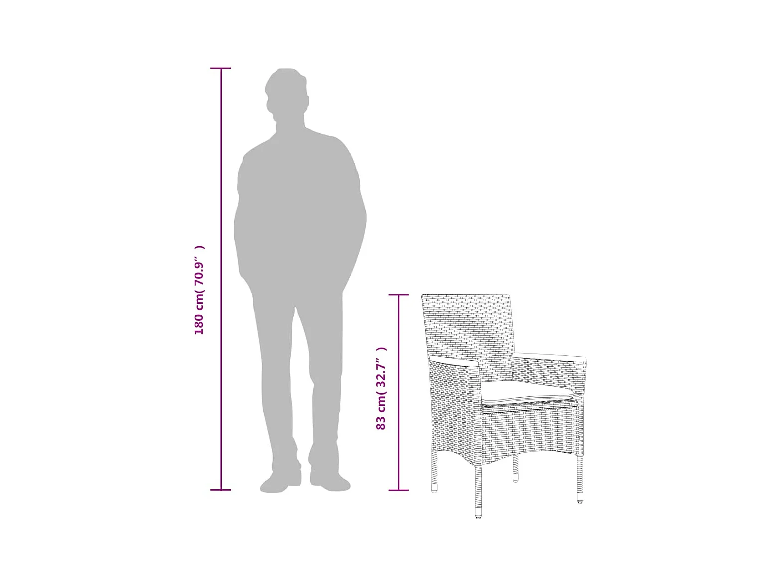 3-delige Bistroset met kussens poly rattan en acaciahout zwart
