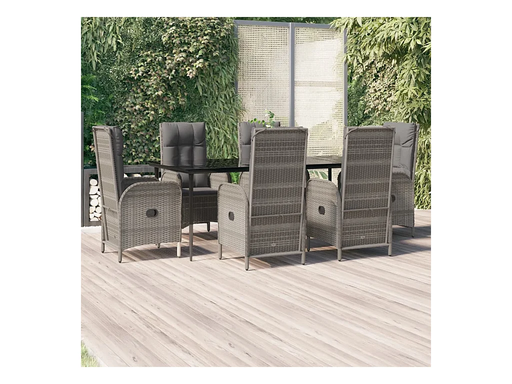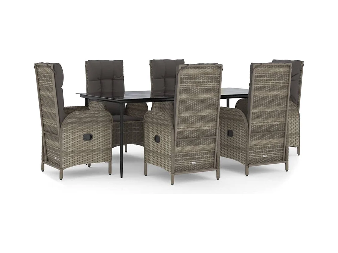 7-delige Tuinset met kussens poly rattan zwart en grijs