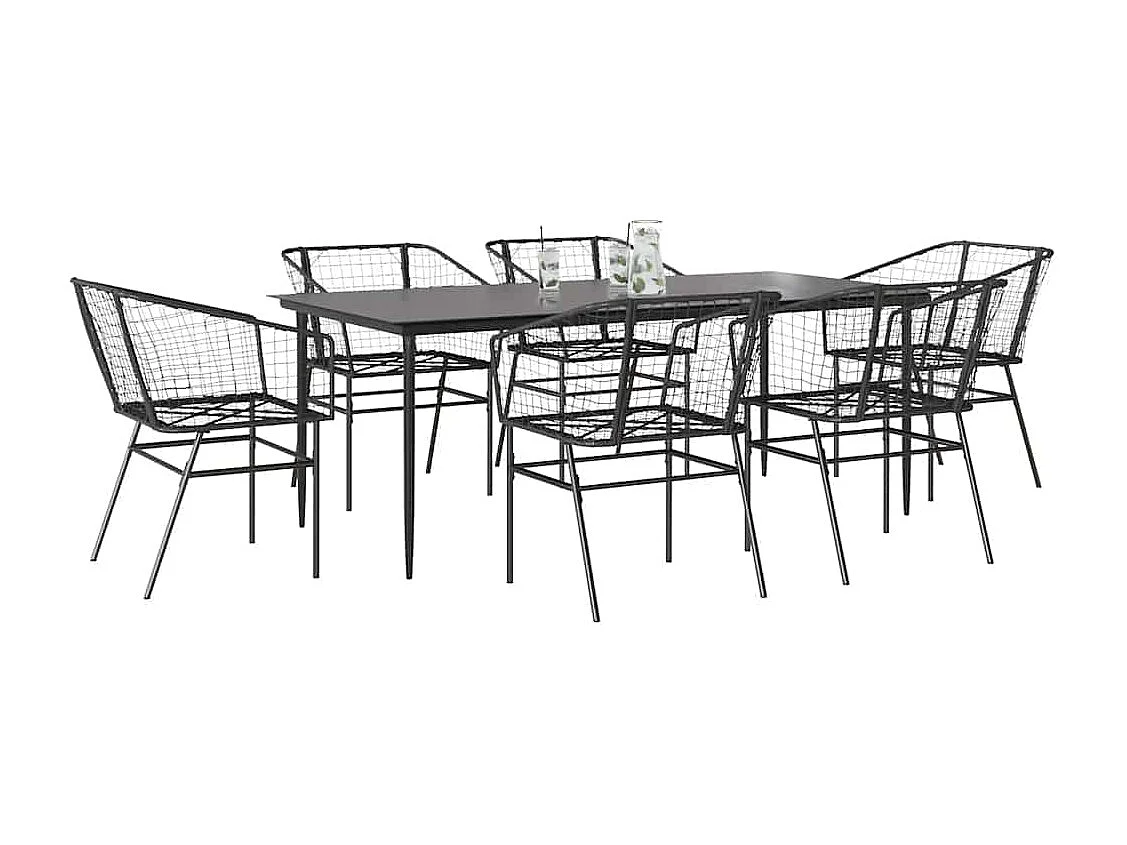 7-delige Tuinset poly rattan glas zwart