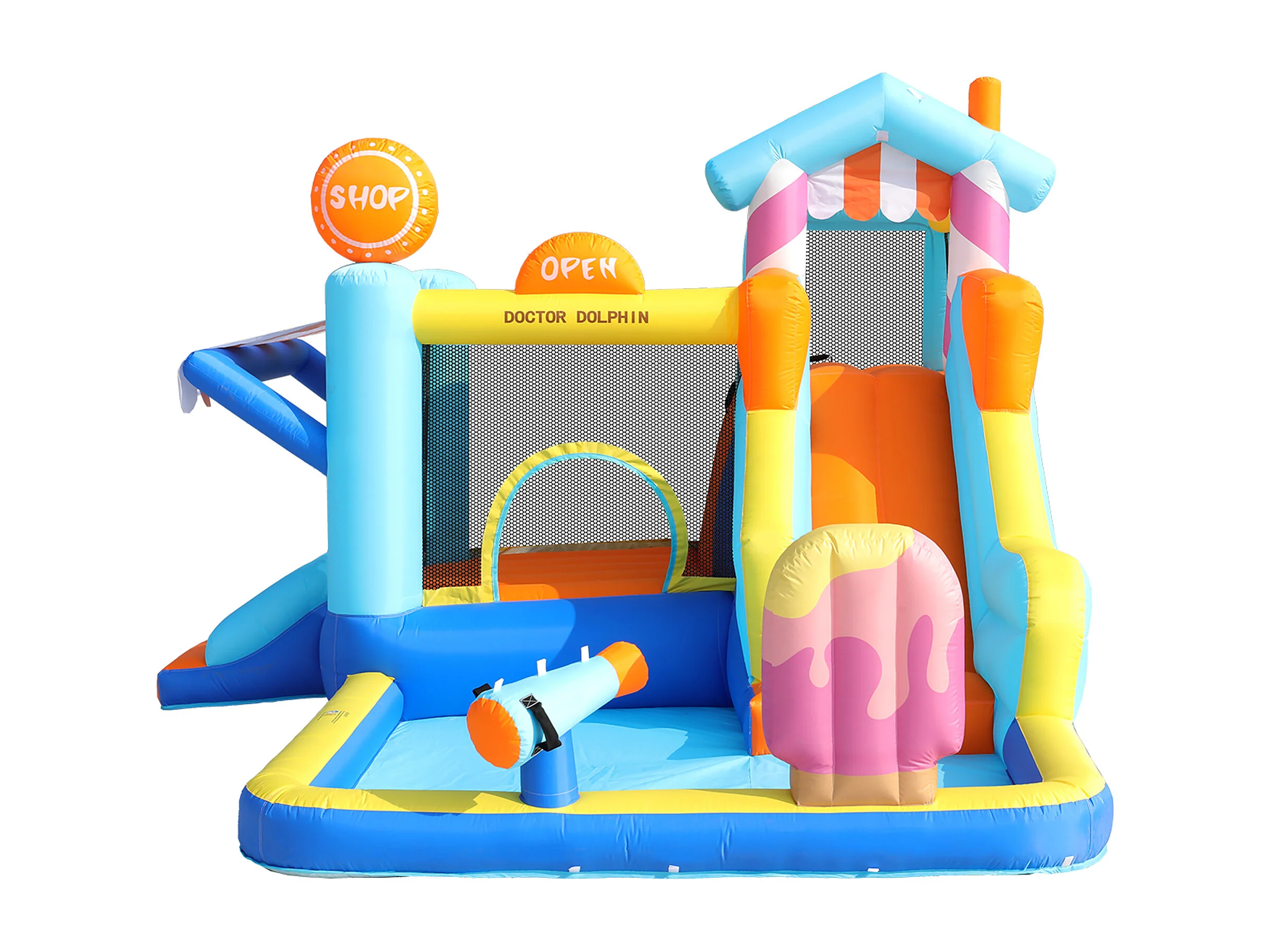 7-in-1 opblaasbaar waterpark voor kinderen - 395 x 340 x 236 cm - Oxford - met blower - Blauw