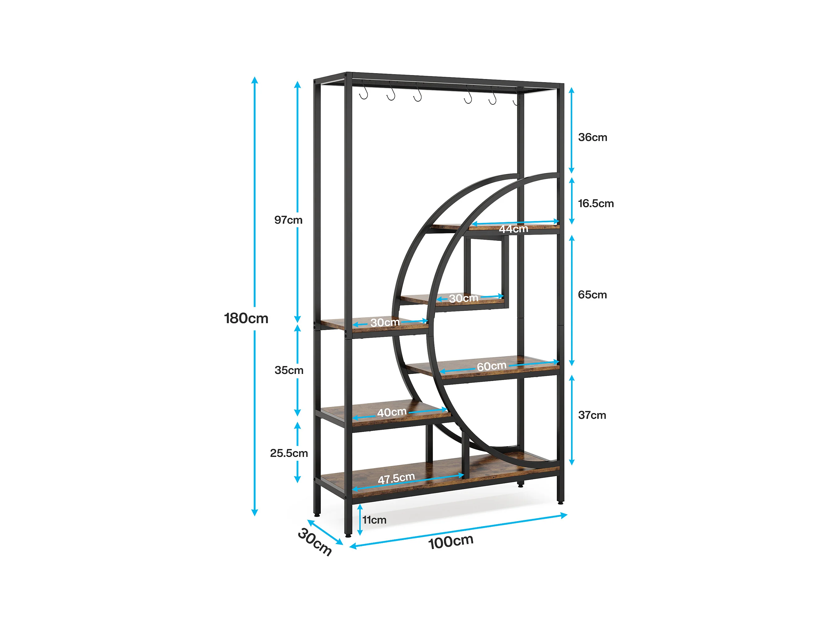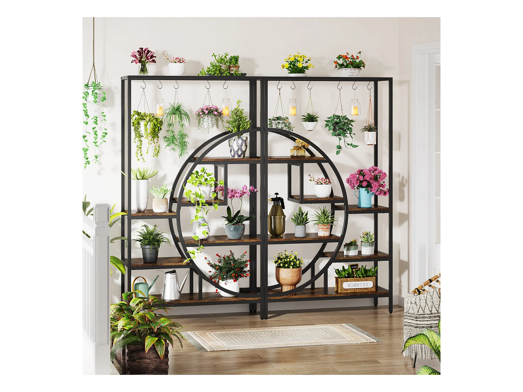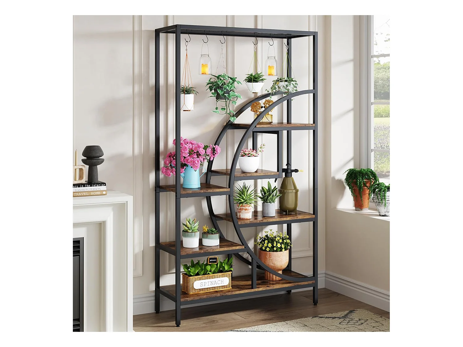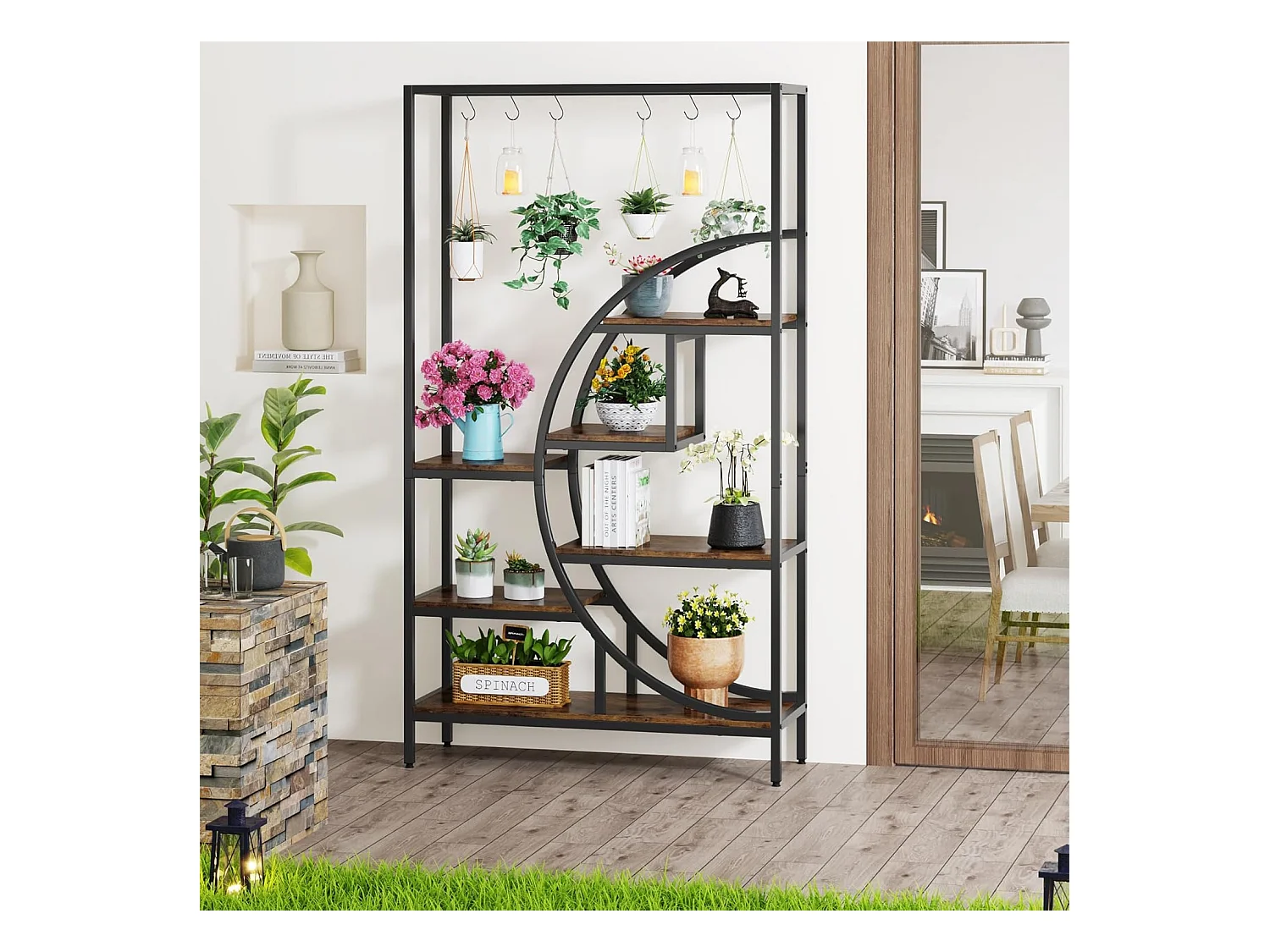 7-laags plantenrek voor binnen, 180 cm halvemaanvormig plantenrek met 6 S-vormige ophanghaken, 1 st.