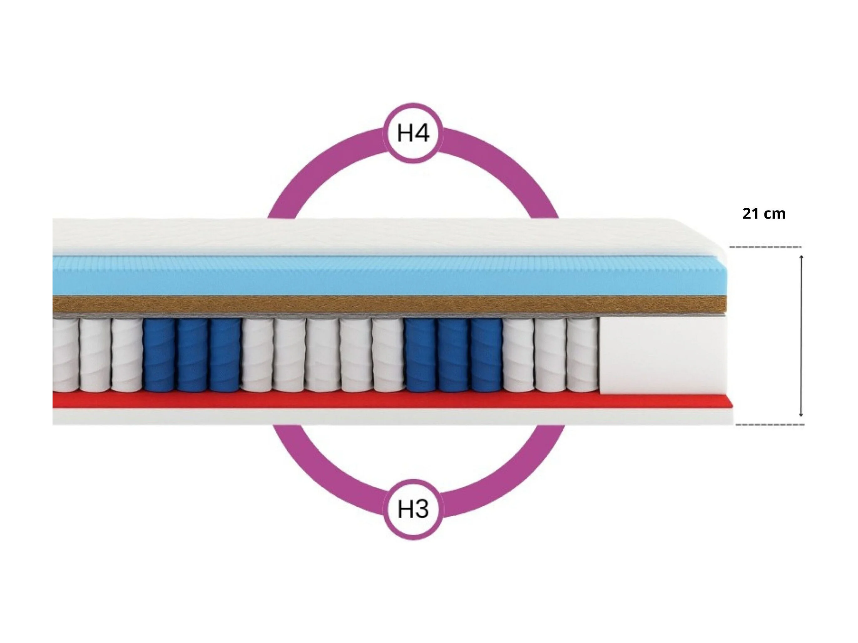 7 zones kokos-pocketveringmatras Premium 160x200x21 cm, matras hardheid H3/H4, kleur: wit, incl. hoes
