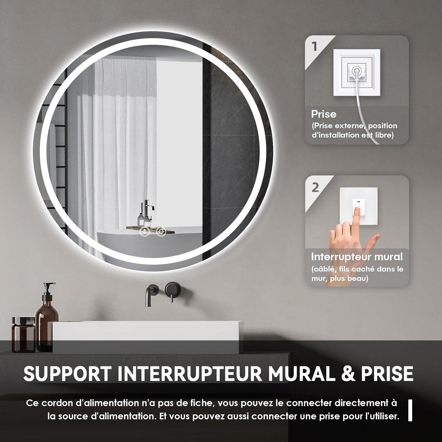 Ronde spiegel met verlichting, LED-badkamerspiegel met aanraakschakelaar, anticondens, Wit 60 x 60 cm
