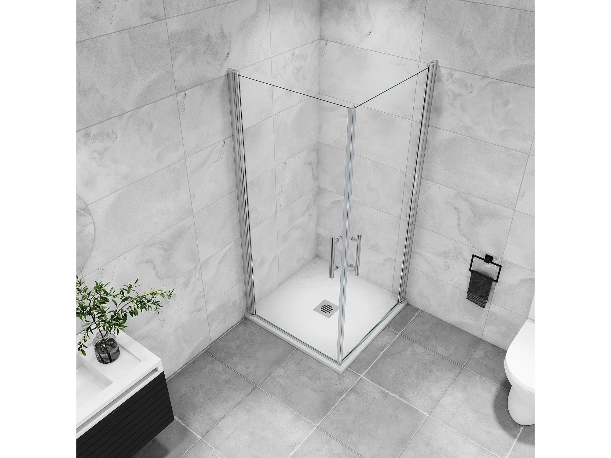 90x100x195cm Douchecabine dubbele draaideuren,8mm helder antikalk NANO glas,profiel van glanzend chroom.