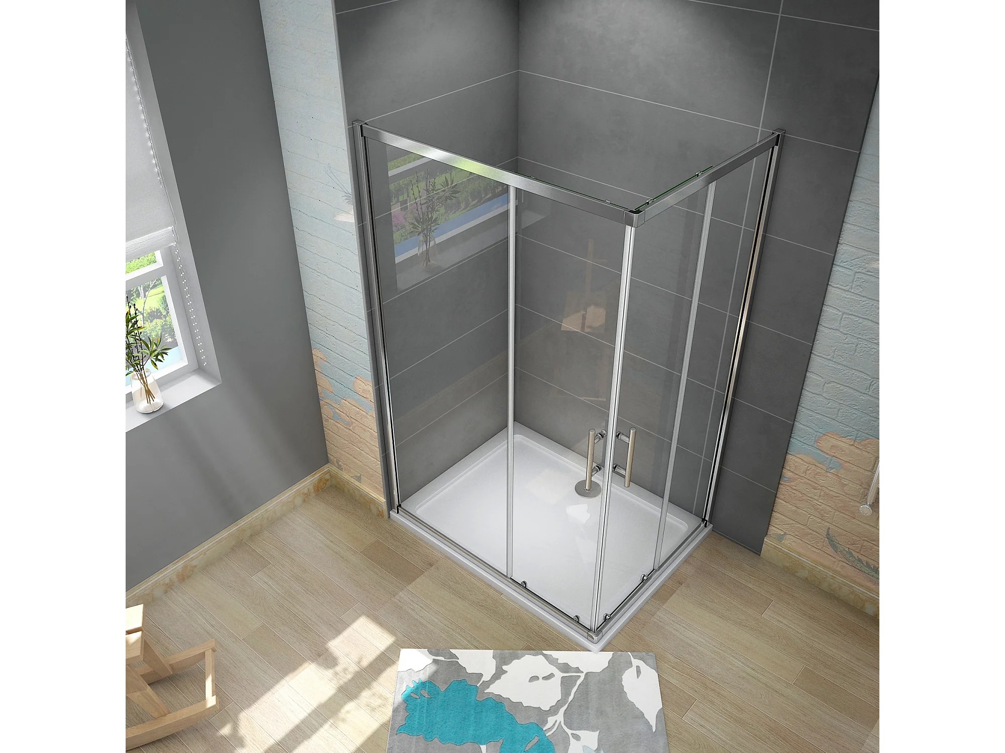 70x110x185cm Douchecabine met dubbele schuifdeur,6mm ESG veiligheidsglas,profiel van glanzend chroom.
