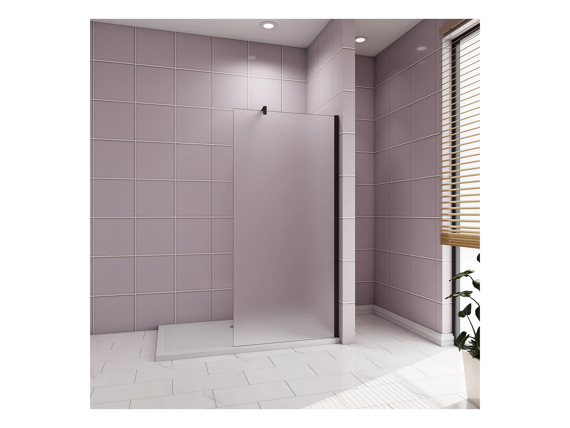 Inloopdouche-douchewand-walk in 70x200 cm,8mm midden wit gematteerd gehard glas met explosieveilige folie,mat zwart aluminium profiel.