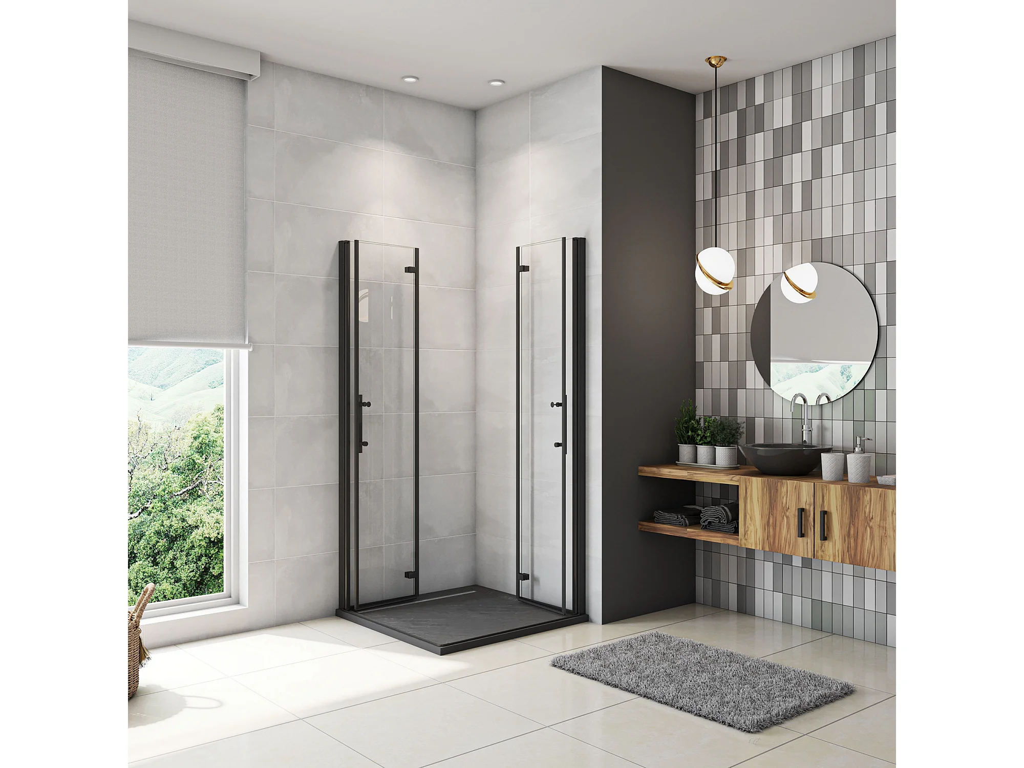 70x70x185cm Douchecabine Vierkant Hoekinstap Draaideur Antikalk Helder Glas Mat Zwart Profiel 6mm Veiligheidsglas Easy Clean