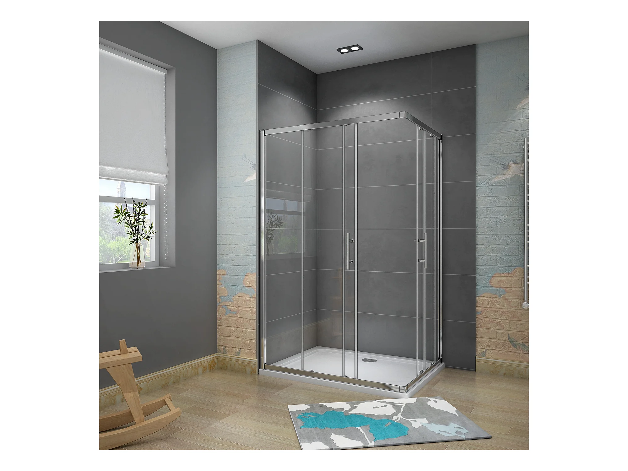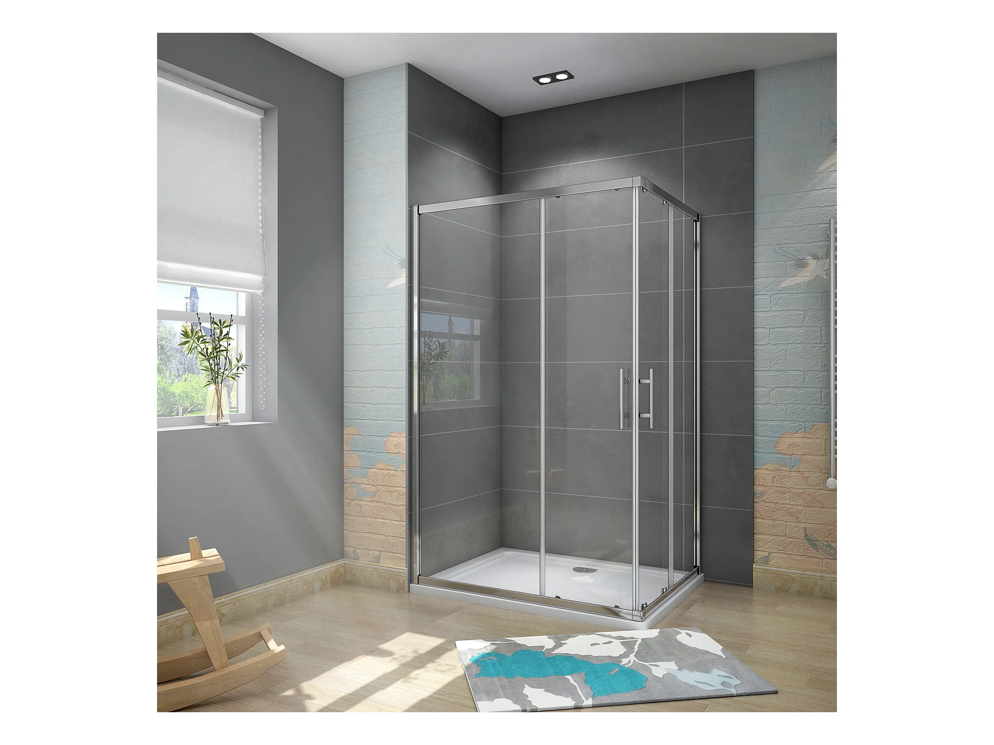 Rechthoekige schuifdeur douchecabine 120x190cm,zijpaneel 90x190cm,5mm helder veiligheidsglas,profiel van glanzend chroom.
